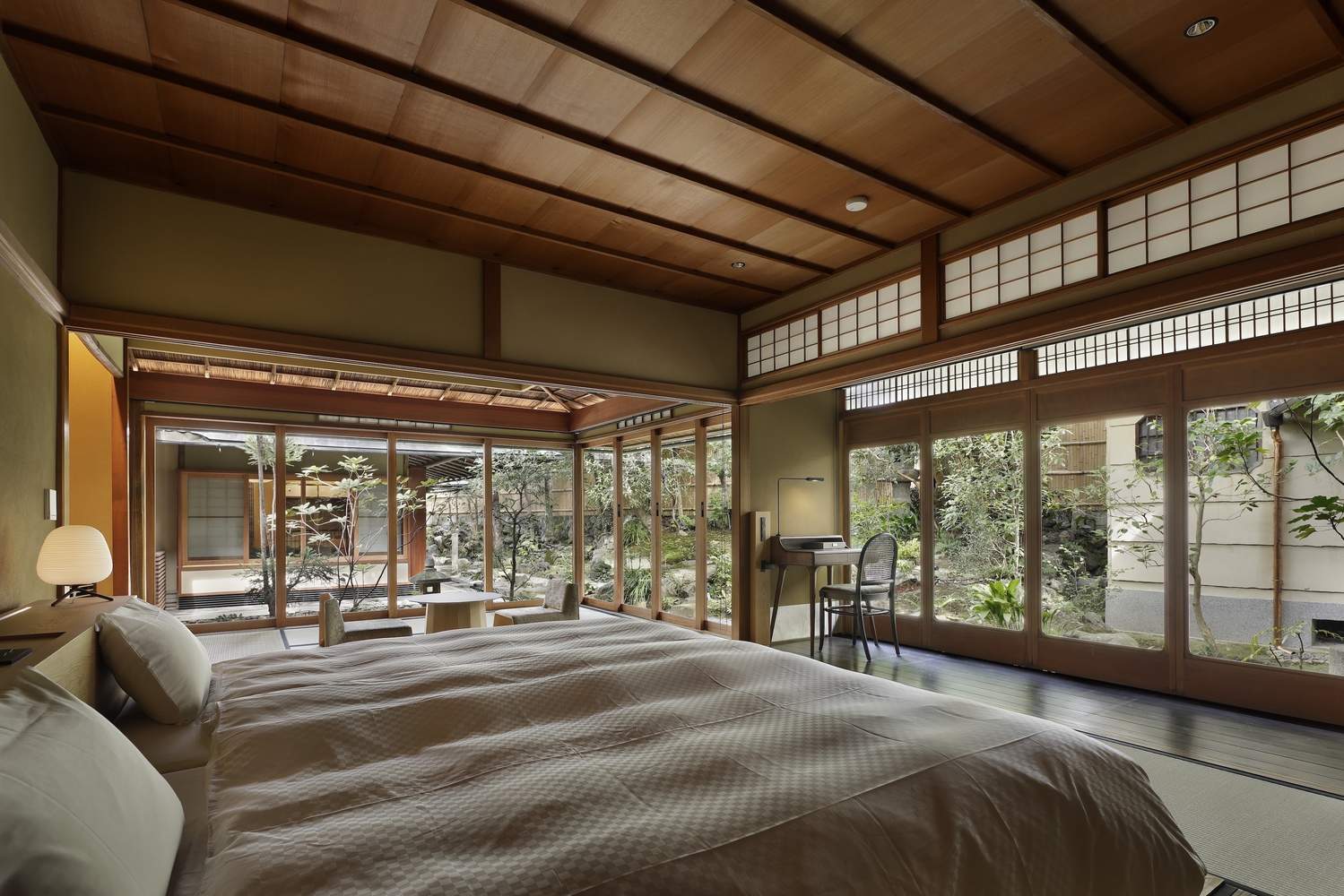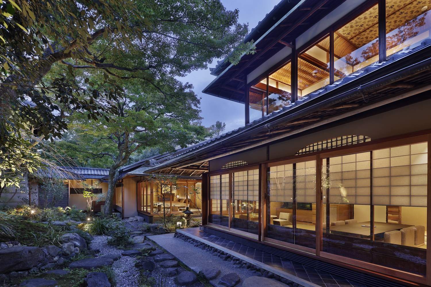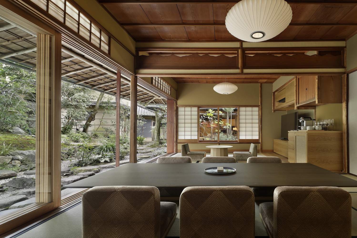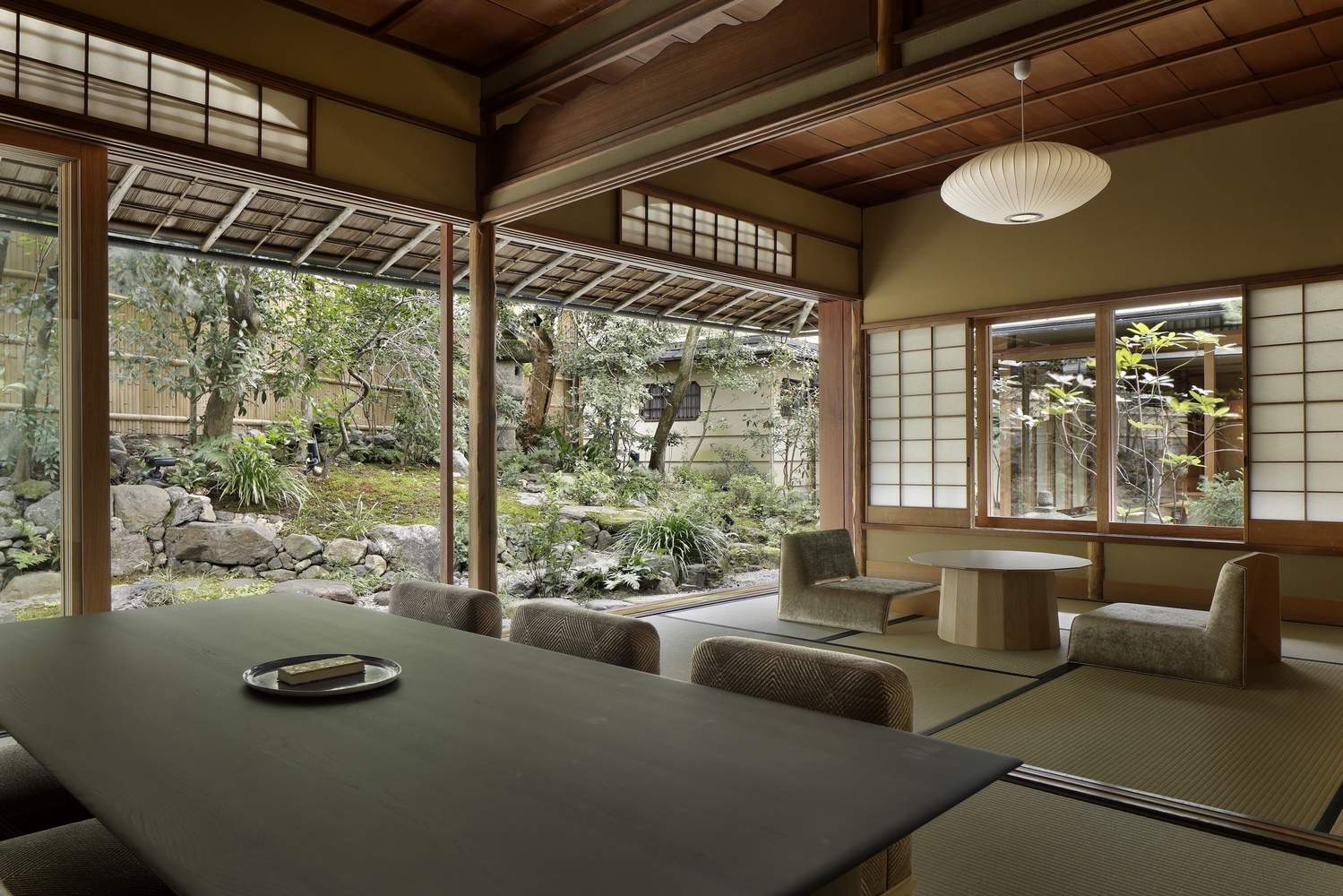 This is a hotel converted from the Sukiya style architecture in Kyoto. The existing building was built in 1920, and its carpenters were craftsmen who had built numerous tea houses in the Gion area of Kyoto. The owner is recorded as a master of tea ceremony. In the tea ceremony records at that time, this building was described as a venue for holding tea ceremonies.