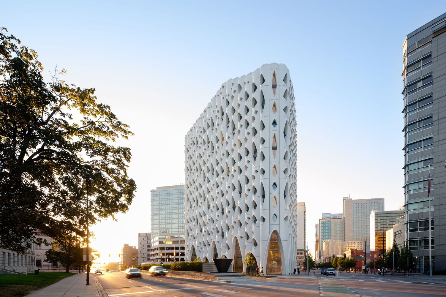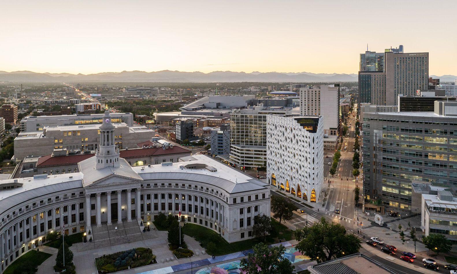 由 Studio Gang 建筑设计事务所设计的 Populus 酒店在科罗拉多州丹佛市中心正式开业。Populus 酒店以其注重生态的建筑设计和灵感源自自然的外观,成为一项集建筑创新与有机设计原则于一体的标志性项目。这家由 Urban Villages 开发、Aparium Hotel Group 管理的含有 265 间客房的酒店,旨在让客人在城市中心重新与自然建立联系。Urban Villages 总裁 Jon Buerge 表示:“Populus 的开业标志着一个意义非凡的里程碑,代表了一种全新的环保型酒店经营模式,它将为注重体验的用户带来前所未有的体验,同时也为丹佛市增添活力,Populus 酒店激励着整个行业重新思考酒店如何能以积极的方式为环保事业做出贡献。”
