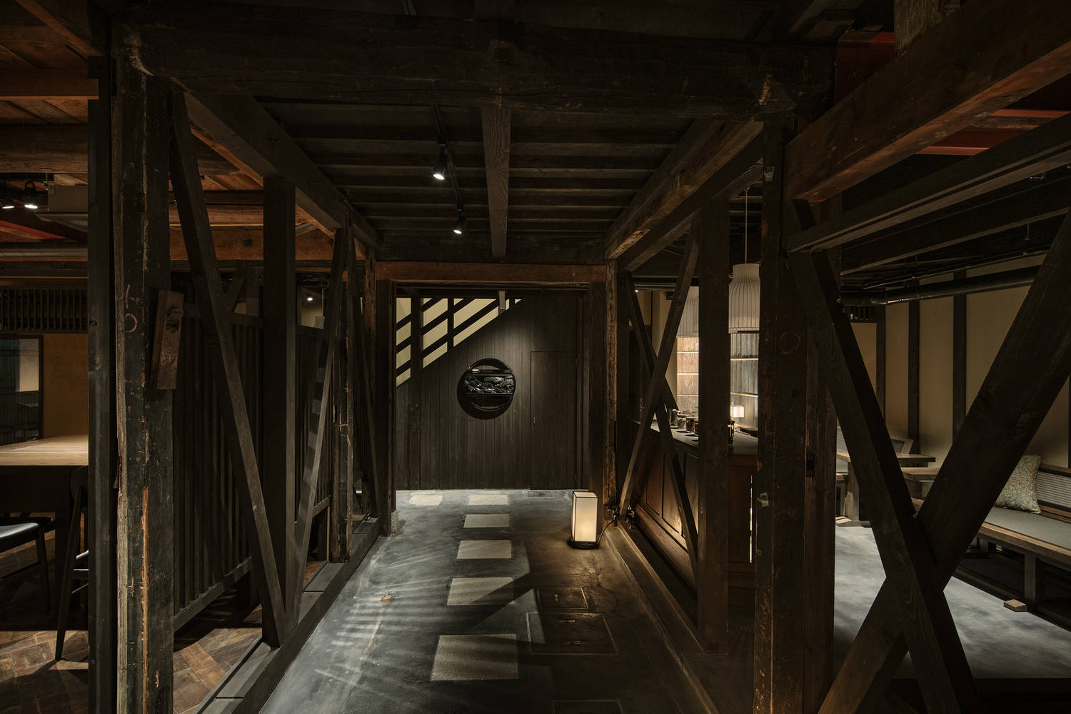 In the west wing, the design team retained the original soil flooring (tatami mats), which is now connected to small courtyards (open spaces) located in the north and south of the east wing. Although the lighting in traditional townhouses is a challenge, the restaurant and lounge are designed adjacent to the courtyard, introducing ample natural light.