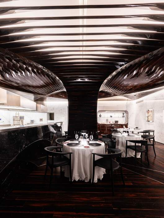 空间序列与材质运用: 项目在空间序列的营造上展现了卓越的设计功底。从入口到客房,设计师重新构建了连贯的空间体验,将曾经的庭院改造为带伸缩式玻璃屋顶的穹顶,形成了一个充满活力的中心枢纽。同时,材料的选择与运用是该项目的另一大亮点。设计师巧妙地结合了卡拉拉白大理石、黑色大理石、马卡萨乌木等多种材料,赋予了每个房间独特的个性。这些材料不仅在视觉上营造了丰富的层次感,更在功能上改善了音响效果和调节了室温。 这种对材料的细致考量,体现了扎哈·哈迪德建筑事务所对细节的极致追求。