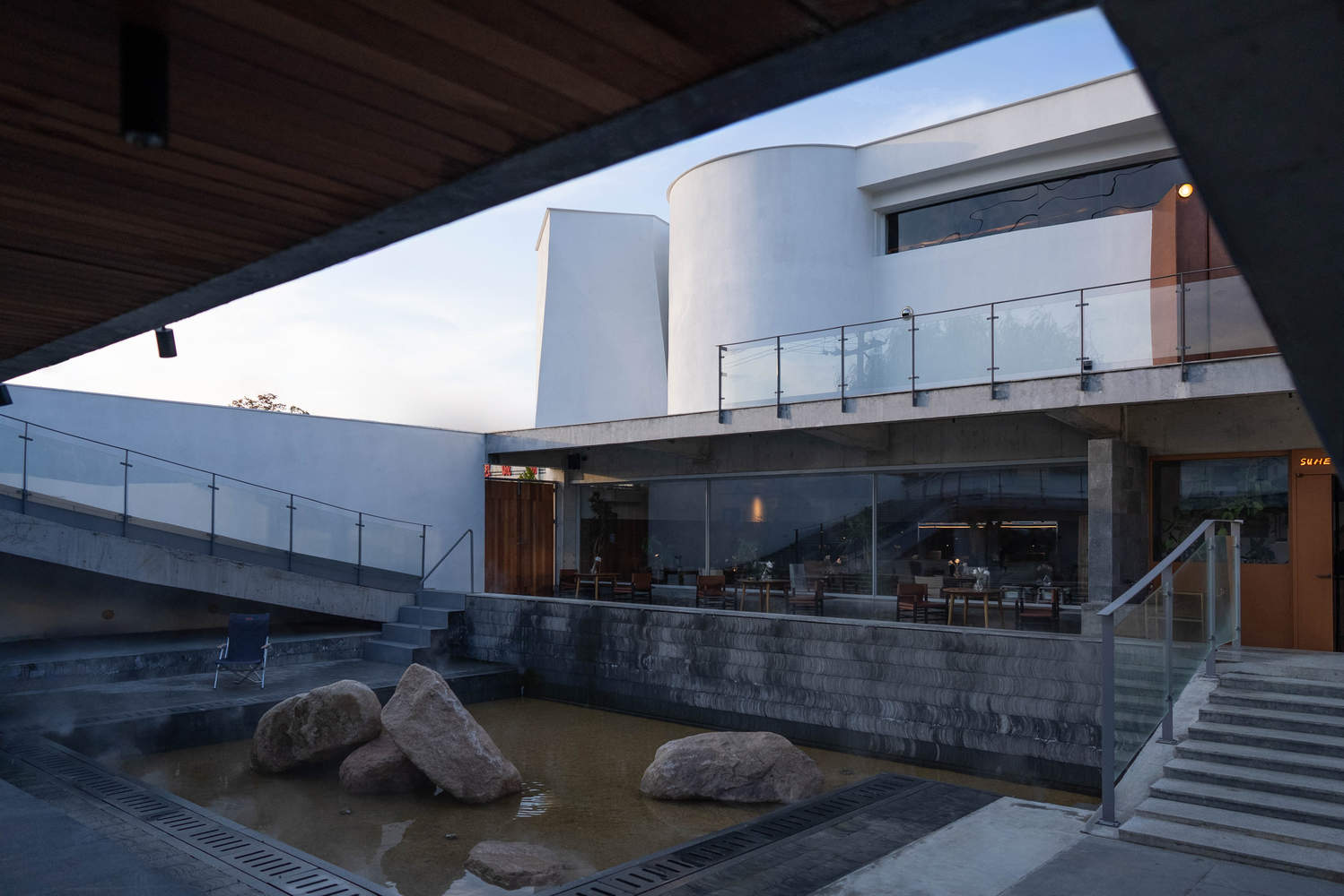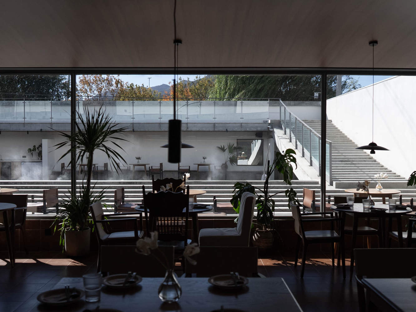 “漫游建筑”的设计理念与实践:本项目最引人注目的在于其“漫游建筑”的设计理念。设计师通过创造路径、平台等元素,鼓励使用者在建筑与院落间漫步,从而放慢行为节奏,更深入地感受自然。这种设计理念在苏禾餐厅的空间布局中得到了充分体现,一层与户外充分联动,模糊了室内外边界,营造了更大的空间场域;二层则作为连接室内外路径的“始发站”,设置了通往不同方向的“班车”。这种设计赋予了建筑动态的体验,使得建筑不仅仅是静态的场所,更是连接人与自然的纽带,鼓励人们去探索和互动。