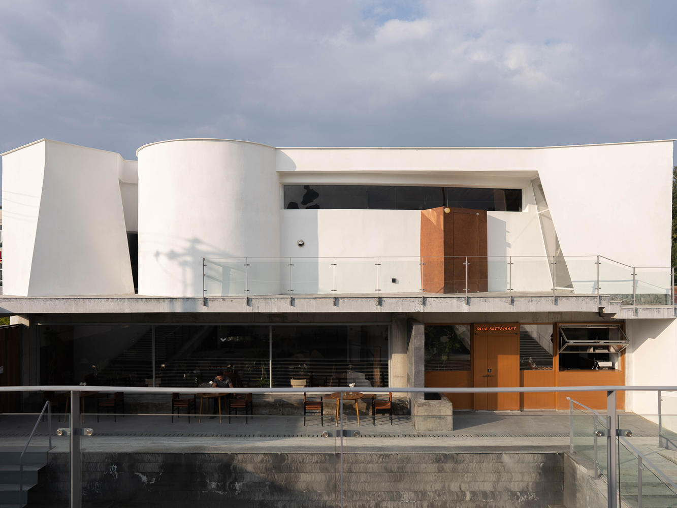 建筑形态与细节的匠心独运:从图片中可以看出,苏禾餐厅在建筑形态和细节方面也颇具匠心。隐秘的入口与二层雕塑感的形体形成了鲜明对比,这种对比增强了建筑的视觉冲击力。此外,设计师还在院墙内外设置了大量的平台和座位,供客人和路人休憩,这不仅丰富了空间功能,也促进了人与人之间的交流。从整体设计来看,建筑既注重与环境的融合,又强调自身的独特个性。这种对细节的关注,体现了设计师对建筑品质的极致追求,使得整个项目在视觉和体验上都达到了较高的水准。