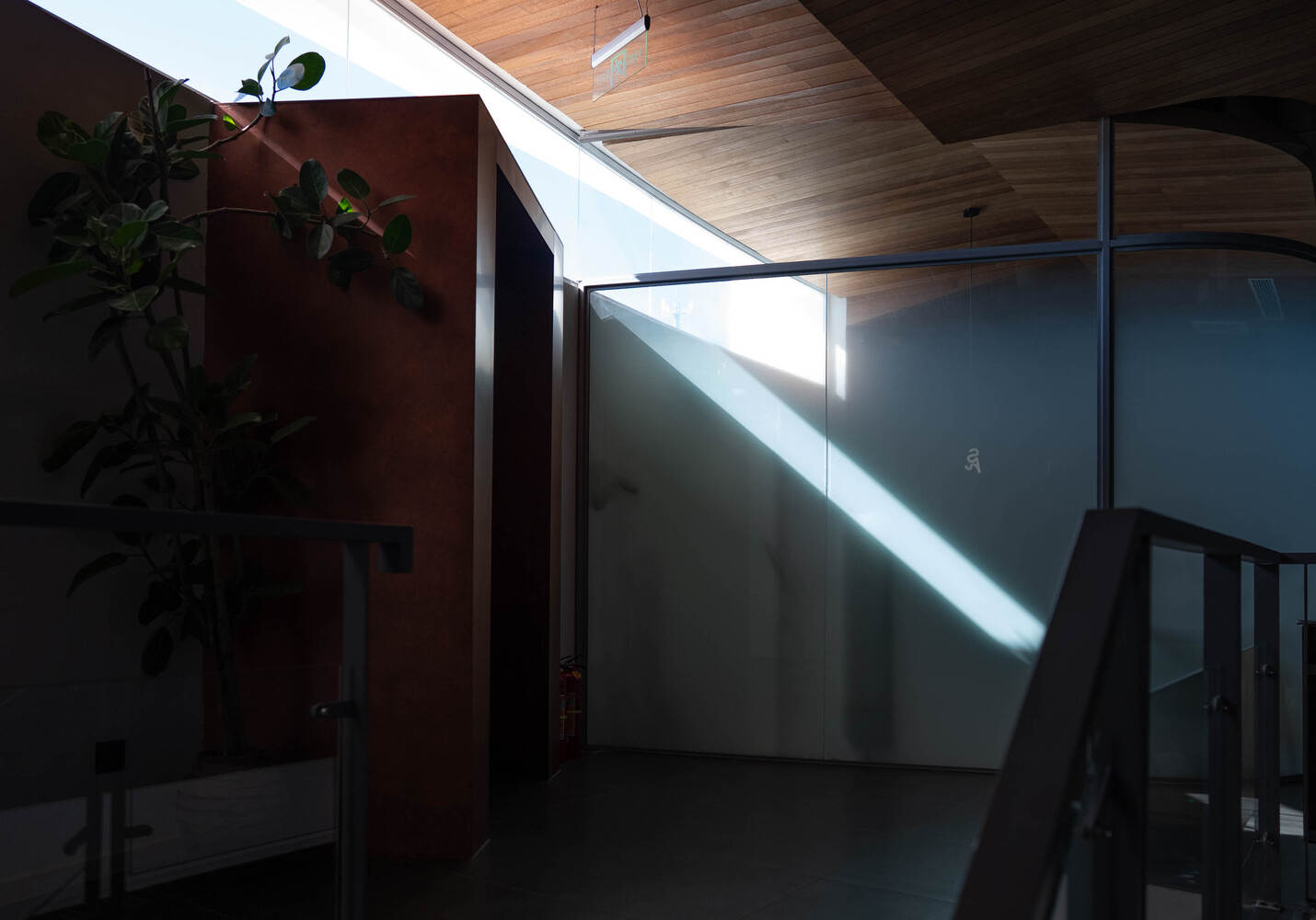 隐秘的入口与二层雕塑感的型体对比鲜明,围绕院墙内外,我们也做了很多平台和座位,供客人与路人或坐或闲。