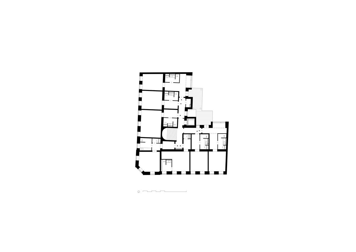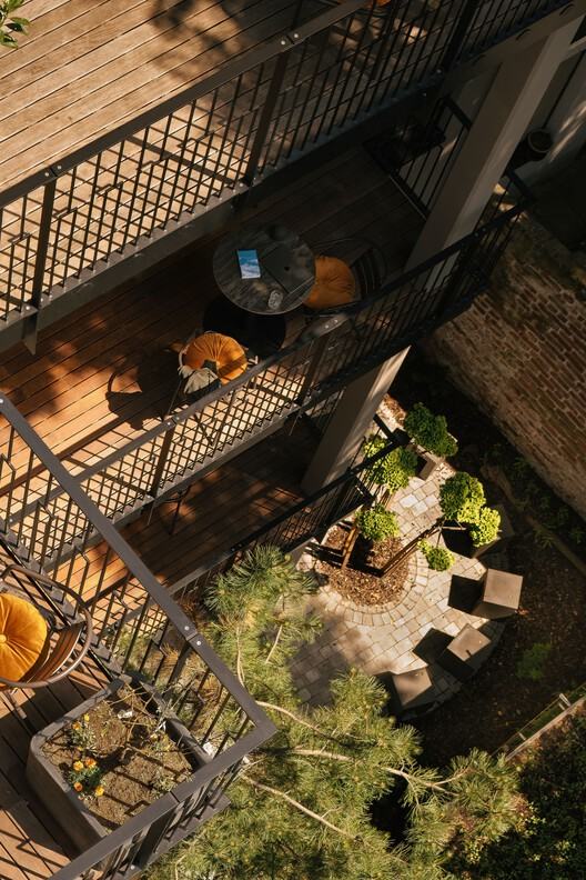 在室内装饰方面,设计团队精心选择了既美观又耐用的材料。木材、黄铜和玻璃在营造温馨典雅的氛围中起到了关键作用。每件家具都经过精心设计,兼具功能性和美观性,赋予空间鲜明的个性。每个房间都注重细节,体现了我们 "润物细无声 "的理念。其结果是,空间既尊重了现有建筑的历史遗产,又采用了现代设计方案。通过灵活的家具和精心设计的空间概念,设计团队创造了一种既突出建筑特色又满足客人需求的体验。