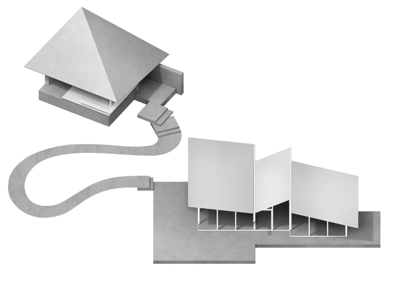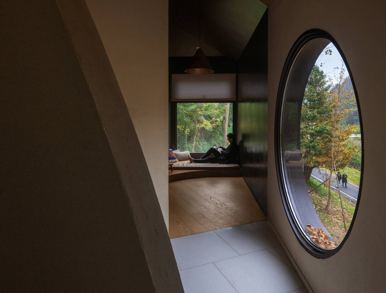 The organization principle of space is linked to human visual perception, based on the scale and experience of the body, making functional rooms geometric cloze to ensure the economic usability of the space. Then, through the combination of triangular or trapezoidal shaped spaces, freely growing trees on the site are joined to form an experiential effect of combining movement and stillness, and crossing inside and outside, attempting to organize diverse settlement forms with restrained basic units.