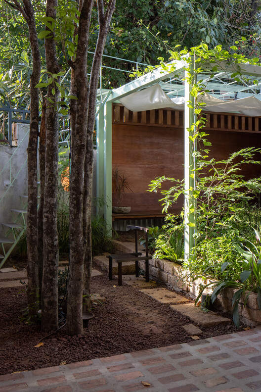 该场地深藏于西贡(今胡志明市)一处热闹街区之中,宛如一片难得的静谧之地 —— 为重建一个与周边绿地斑块、天空以及邻近河流重新相连的生态系统提供了理想条件。