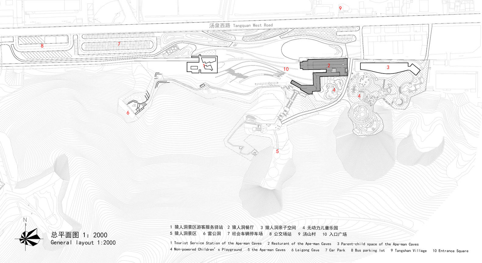 Tangshan Ancient Ape Man Cave Scenic Area is located in a valley east of Nanjing city. It is famous for the discovery of ancient ape man sites and has always been a famous tourist destination in the suburbs of Nanjing.. The area where the scenic spot is located belongs to the urban-rural junction and has always been an important transportation artery in history. An east-west road runs through the valley. Due to the close distance and limited space between the mountain and the road, as well as the presence of a drainage channel in the site, the scenic area, parking lot, and community public land are mutually constrained. As a result, the Yuanren Cave scenic area has been plagued by problems such as poor transportation, lack of prominent image, and insufficient service facilities.