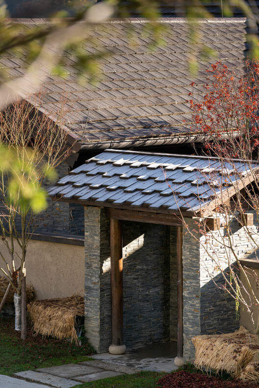 While drawing inspiration from the traditional spatial layout of Tibetan villages, combined with the functional needs of modern hotels, the "courtyard" space of traditional Tibetan style residences is referenced. From the "front yard" of the drop off area to the "small courtyard" of the guest room entrance, from open to private, different functions and scales of courtyard spaces create different spatial atmospheres. The guest rooms focus on providing guests with a warm "homecoming" feeling, with exquisite and compact wooden doors welcoming them to the hospital. The private courtyard surrounded by straw and rammed earth walls adds a sense of seclusion. Passing through the entrance, living room, and bedroom, guests arrive at a spacious private terrace, facing the green fields and mountain streams in their private space, embracing antiquity.