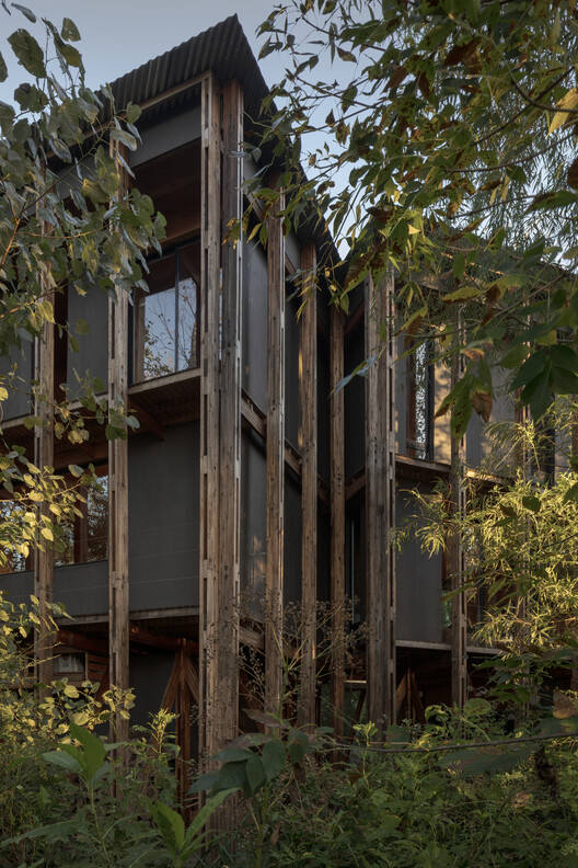高脚桩体系的创新运用: 项目对高脚桩体系的运用堪称经典,这是一种适应湿地环境的古老智慧。建筑师并未简单地复制,而是将其重新诠释为一种“构造宣言”。工业化桩柱的矩阵不仅满足了建筑功能需求,更成为了独特的建筑语言。这种结构设计巧妙地避免了传统基座的束缚,使建筑仿佛从大地内部生长出来,轻盈而充满生命力。材料的选择也颇具匠心,采用了本地的赤桉木材,强化了建筑与环境的联系,并突出了可持续的设计理念。这种对传统技术的创新运用,以及对材料的尊重,是项目的一大精髓。