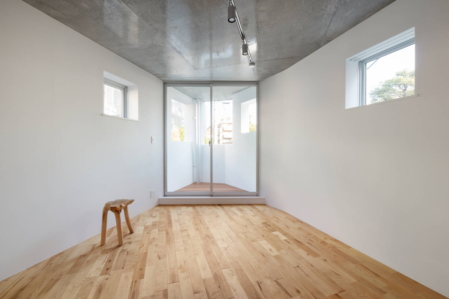 鉴于场地狭小,无法设置电梯,因此将顶层公寓的入口设于四楼(即楼梯所能到达的最高点),并将四楼和五楼相连,打造出一套复式公寓。该建筑平面和剖面均呈斜向切割,内部空间虽小,却自有一种纵深感,营造出别具一格的空间体验。