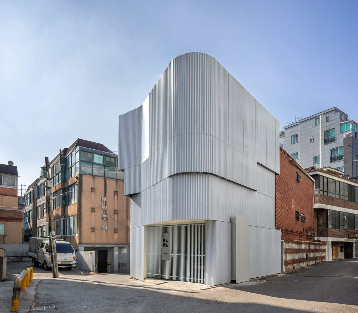 结构与立面的创新结合:该项目在结构和立面处理上展现了独到的见解。为满足停车等实际需求,项目大胆采用了钢结构框架,这不仅确保了建筑的结构稳定性,也为室内空间提供了更大的灵活性。更值得称道的是,建筑外立面摒弃了繁复的装饰,而是将重点放在材质和形态的互动上。通过巧妙地运用耐久且经济的波纹钢板,并结合三种不同的图案,立面呈现出独特的深度和节奏变化,赋予了建筑丰富的视觉层次。这种设计手法在有限的预算下,实现了外观的精致与内涵,充分体现了设计师对材料特性的深刻理解和对建筑美学的独到见解。