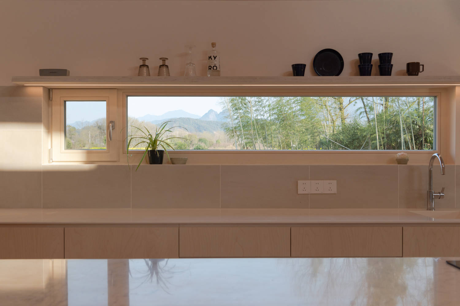 The main hall, wooden house, and kitchen all incorporate the genes of traditional Chinese courtyard residences into their respective volumes, and are reproduced in different languages in their respective scenes. The sliding doors of the master bedroom open into the courtyard where light overflows, directing the view towards the fields and streams. The reinterpreted 'Beauty Leans' lightly between them, framing Wanri and Gaolin. At breakfast, the silhouette of the distant mountains and the bamboo forest community turn into a vivid painting - a contemporary tribute to the "borrowing scenery" technique of Suzhou gardens.