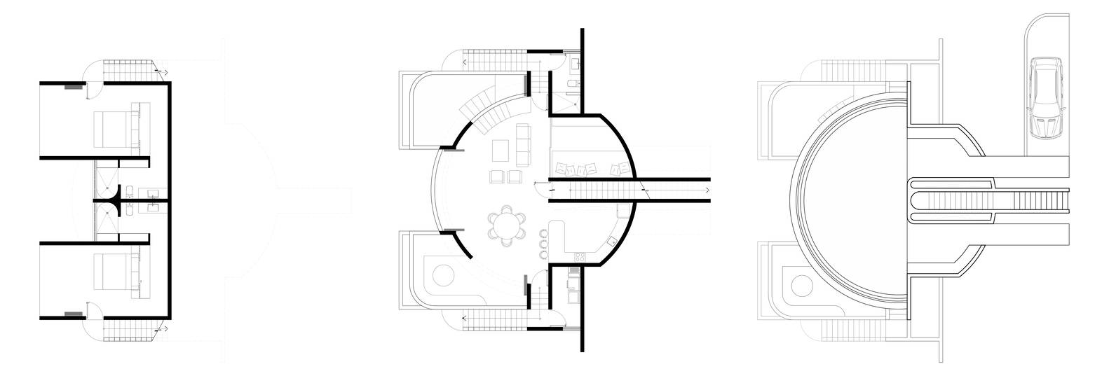 空间布局的创新与流畅:该项目在空间布局上展现了卓越的创造力。通过对场地坡度的巧妙利用,建筑师设计了层层递进的空间体验。从上层的露台到下层的社交区域,再到卧室区,每一个空间都经过精心设计,以确保最佳的景观视野。这种阶梯式的设计不仅完美地融入了地形,还营造出一种动态流畅的空间感受。特别是社交区域的巨大开口,将室外美景巧妙地引入室内,模糊了室内外的界限,增强了空间的开放性和通透性。这种流畅的空间过渡和对景观的极致利用,是该项目的一大亮点。