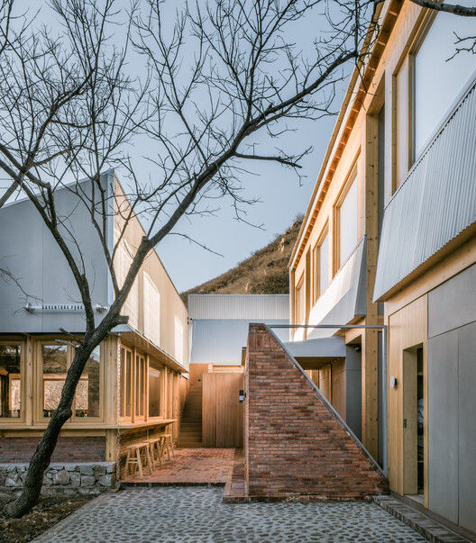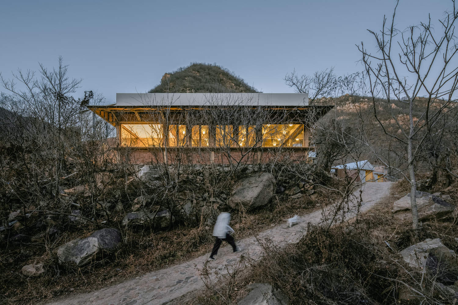 We followed this idea and reconstructed the venue. The scene of chestnut shells falling here in autumn is the most touching, which is a rare display of abundant appearance in Yanshan. We call the new building "Man Li Tai". 'Tai' is a vague architectural type in ancient China, which can be a place for people to view scenery or a way for people to get involved. We want to re-establish the connection between people and scenery between the traces of the original work shed.