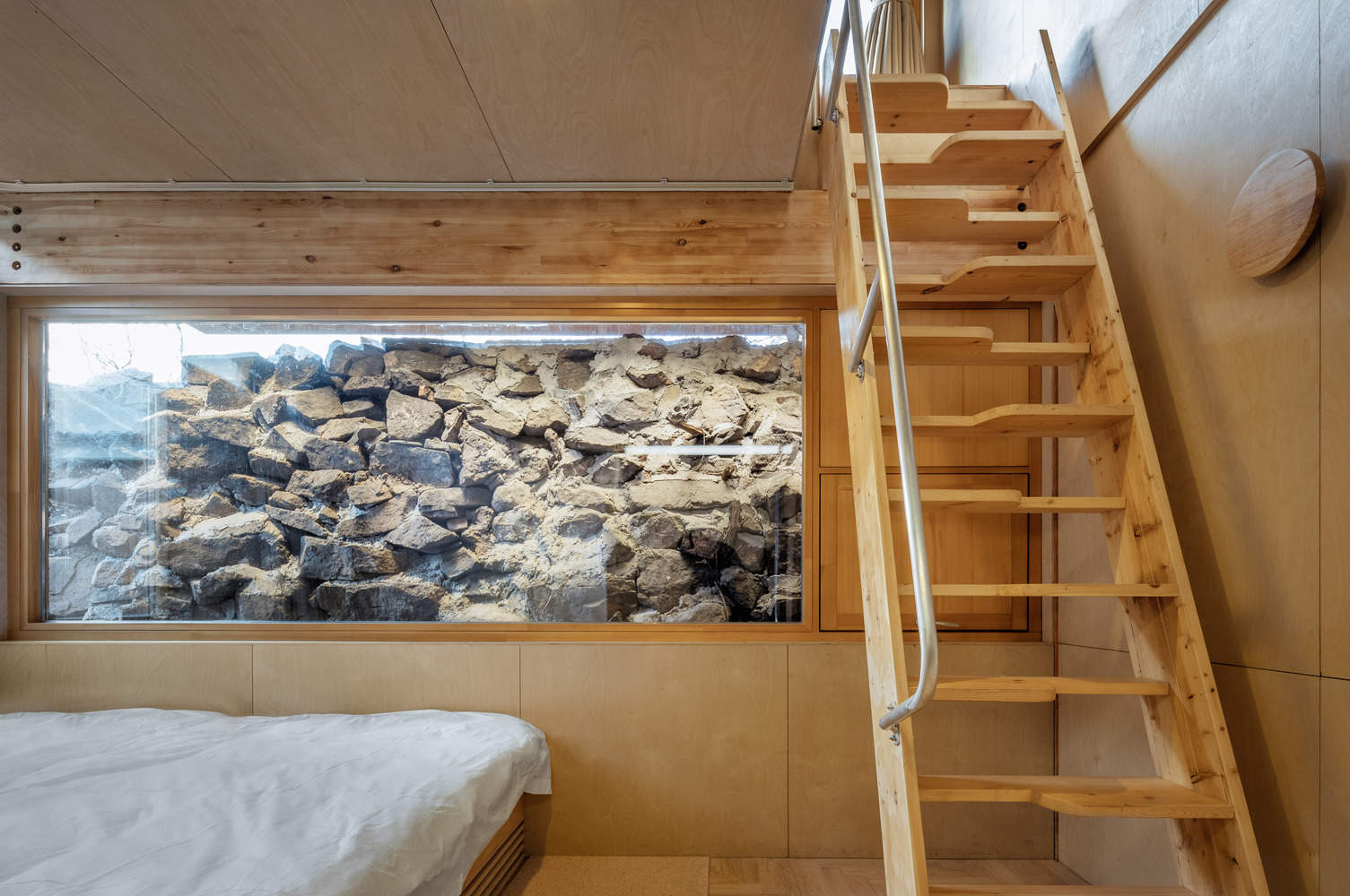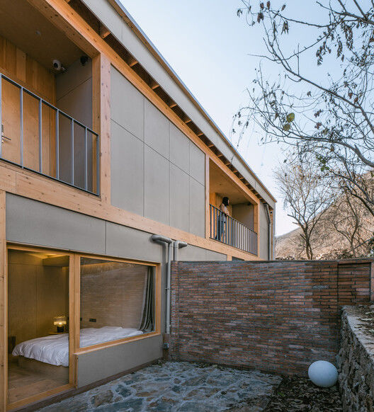 We hope that 'Man Li Tai' is a contemporary wooden creation, and its contemporary technological features are its base color. When this was still a work shed, workers would pick up some yellow stones from the old stone pile to build the lower threshold wall and the footholds of the house. During the renovation process, we used old red bricks dismantled from surrounding villages and towns to integrate unrelated building units on one floor. Various sloping walls have reshaped the contours of the buildings, lingering between the terraces and trees, forming an artificial layer that is different from wooden houses, giving them a certain commemorative value and forming a "relic" belonging to this era.