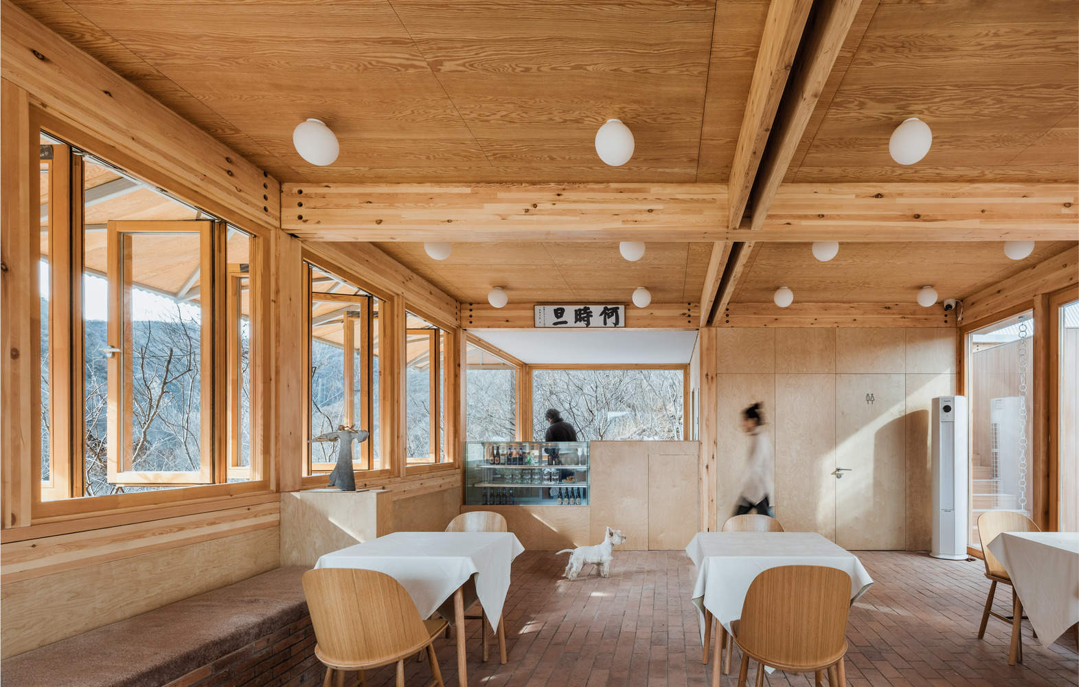 Wooden Buildings and New Relics -Due to construction limitations in mountainous areas, the entire building was constructed using wood. In a relatively small volume, we combined the use of wooden frames and wooden shear walls.. We intentionally avoided the formal language of traditional wooden structures in the wooden frame section. For example, we used an even number of openings on the plane, and the facade also presented an asymmetric shape. The eaves section abandoned wooden structures in favor of a lighter and more realistic steel structure.