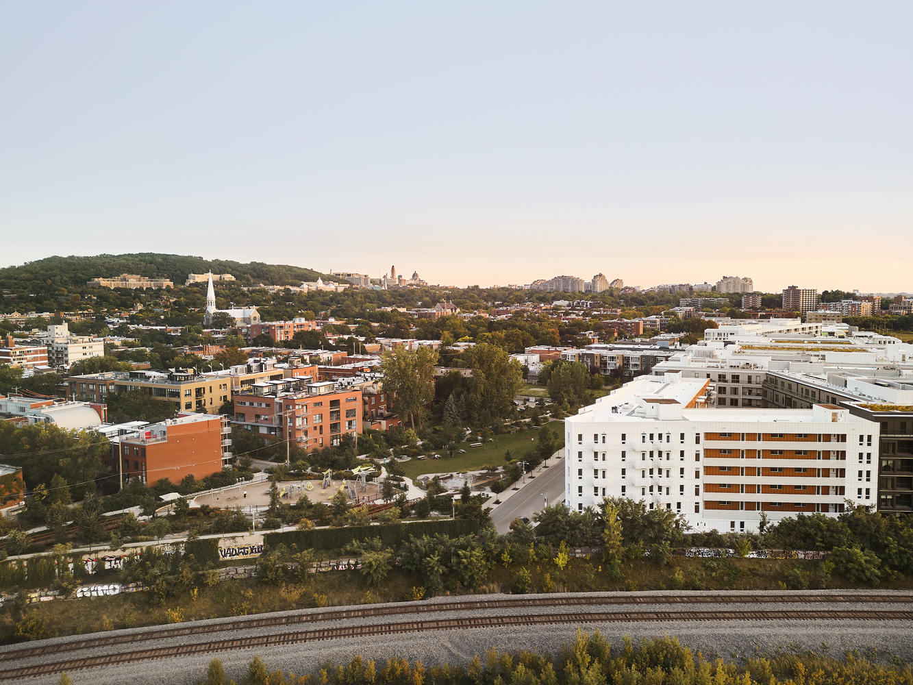 米尔厄德勒岛共享公寓(Coop Milieu de l'Île)坐落于蒙特利尔一处新开发的区域,是一座拥有 91 个单元的代际共居住房项目。该项目由一群热心市民发起,旨在通过打造平价、非市场化住房,缓解城市的住房危机。