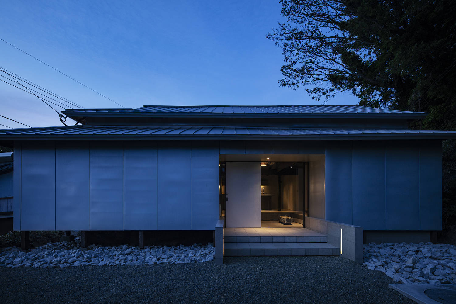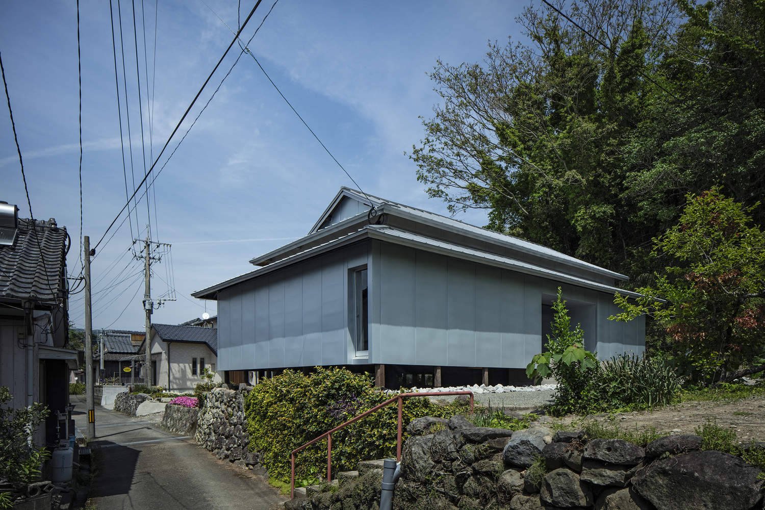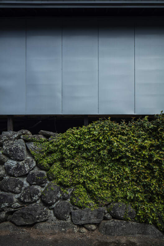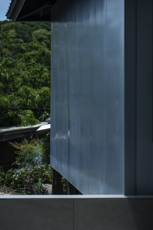 阿久根渔港堆叠的粗犷银色钢制鱼箱,给我们留下了深刻印象。受这些鱼箱及附近海域盛产的竹荚鱼、沙丁鱼等青鱼群的启发,我们设想用银色钢板包裹老宅。这一大胆的建筑举措,不仅为建筑抵御了严酷的海岸气候,更象征着保护与变革之间的对话,让新旧和谐交融。