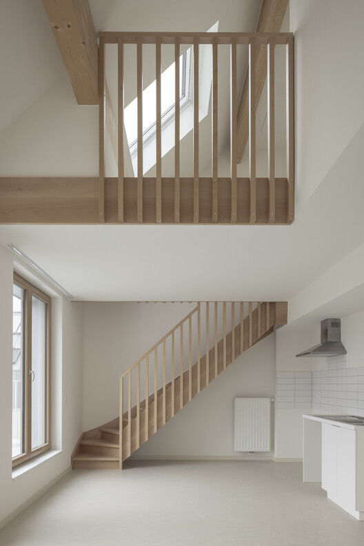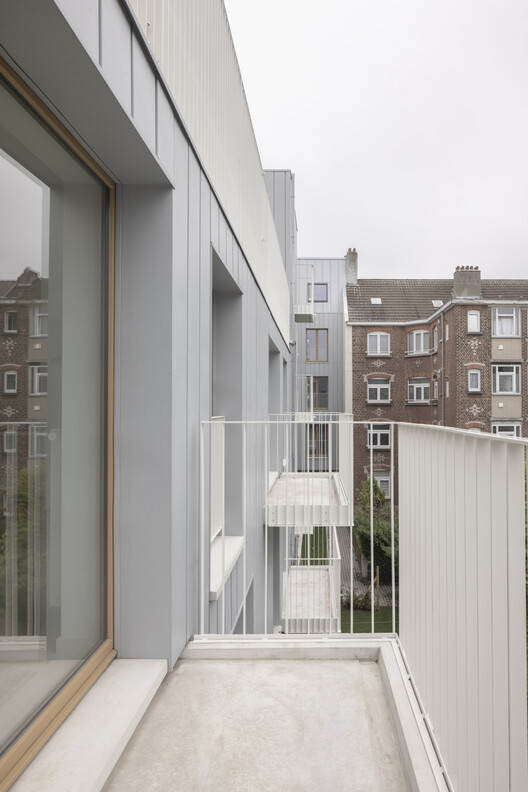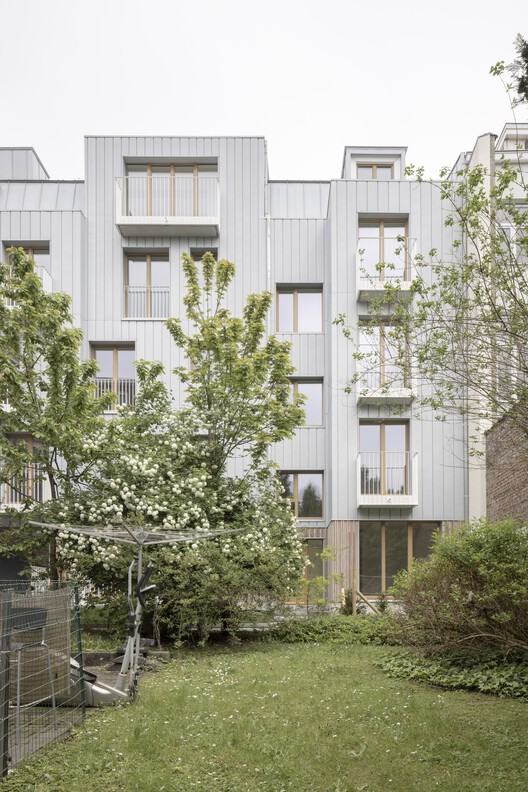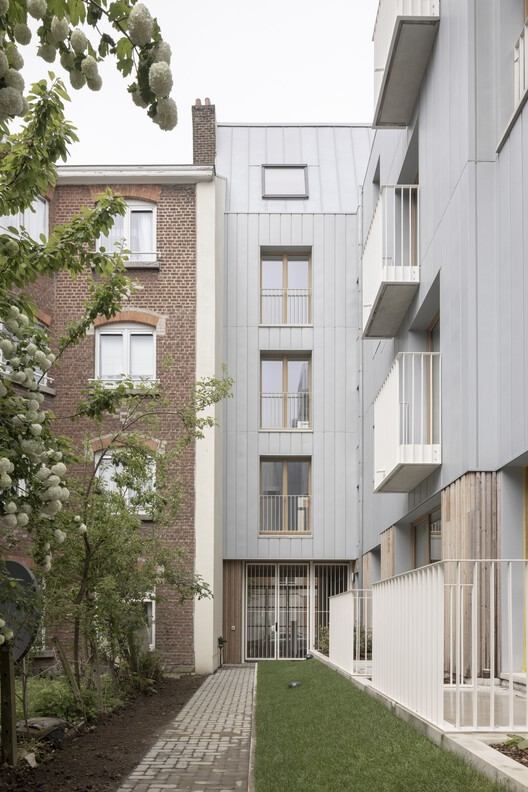 布鲁塞尔核心地带:历史遗产与当代设计的对话 —— 在埃特贝克格朗艾街(Grande Haie Street),这片兼具都市活力与自然绿意的街区,两栋建于 1924-1925 年的住宅楼通过精心平衡的建筑干预重获新生。该项目包含 50 套社会住房单元,既是对现有建筑肌理的尊重性诠释,也明确体现了通过合理增密提升居住环境整体品质的意图。