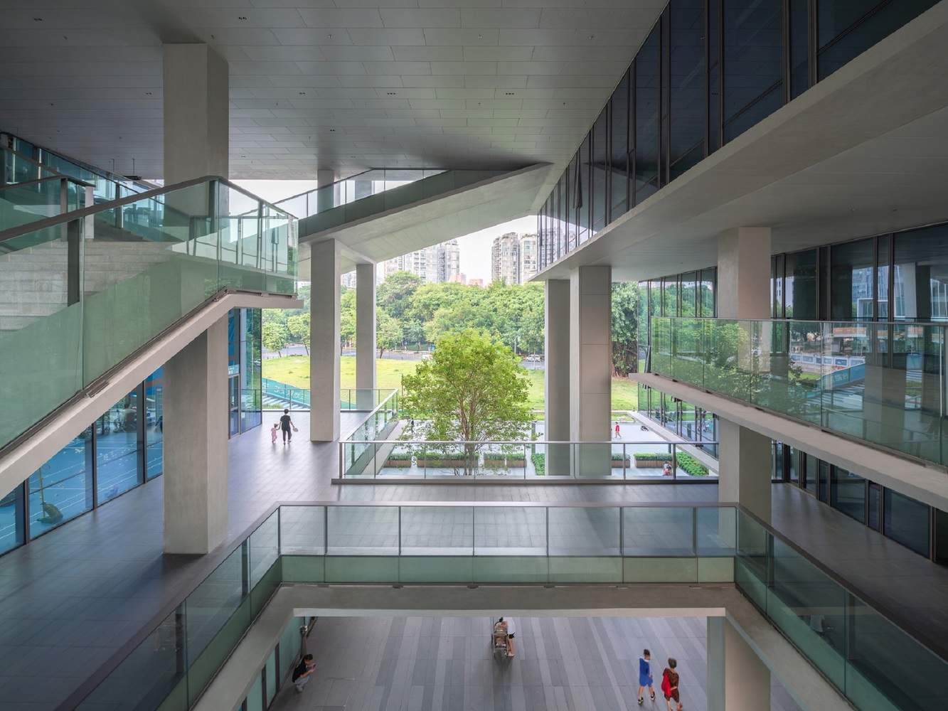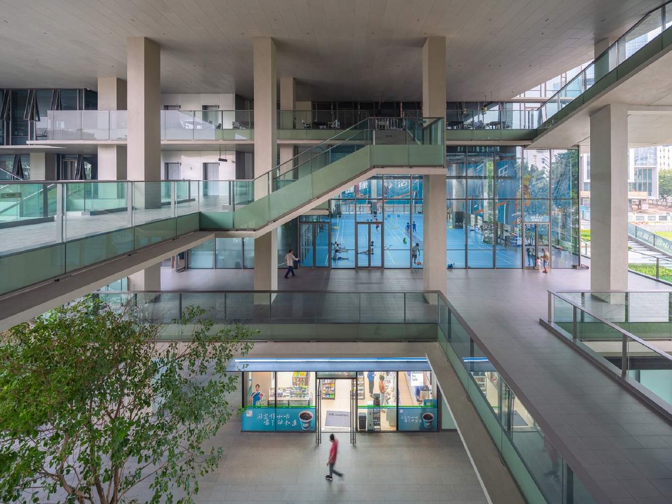 设计精髓:多维度空间策略:项目的精髓体现在其多维度的空间策略上。建筑师巧妙地利用地铁斜穿带来的挑战,将其转化为设计机会,通过平台化设置、错动平台、双层连廊等手法,创造出多层次、多功能的立体空间。这种设计不仅优化了建筑的结构布局,更重要的是,它打破了传统办公楼的封闭性,将自然、社区和日常生活的元素引入其中。垂直方向定义的“零层”为高密度社区提供了空间补偿,而开放的檐下空间则成为人们交流和放松的场所。这种设计手法在有限的空间内创造了丰富的活动可能性,提升了建筑的整体活力。
