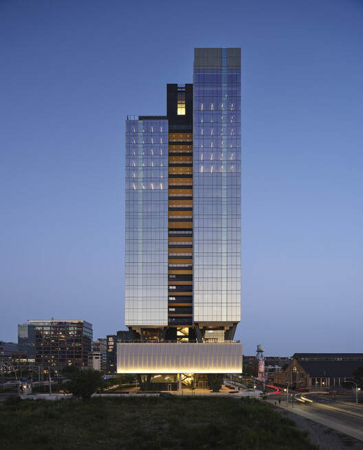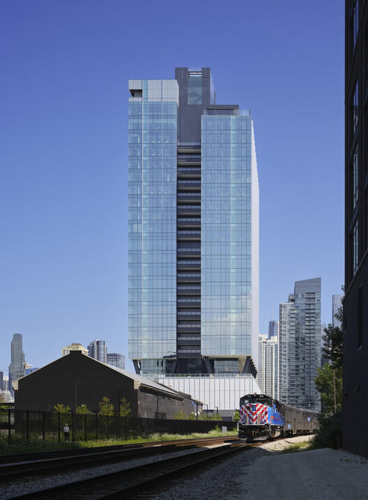 来自建筑师。360 N 格林街是芝加哥最新的甲级办公大楼,也是第一座专为快速增长的富尔顿市场(Fulton Market)社区内的专业服务公司而建的办公楼,该区域位于这些公司传统领地 —— 卢普区(Loop)之外。这栋建筑位于格林街北端,坐落在这座城市最抢手的房地产走廊尽头,周围环绕着西卢普区充满活力的酒店、餐厅和零售区。
