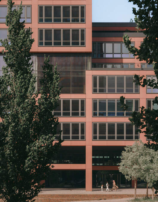 EDGE 港口城项目凭借其开放且多元的设计与周边社会环境紧密相连,建筑外立面的红色配色方案在视觉上与港口城东部的城市风貌融为一体。建筑的所有屋顶表面均设计为蓄水屋顶,且大部分屋顶都进行了密集绿化。塔楼屋顶则安装了光伏板以提供电力。