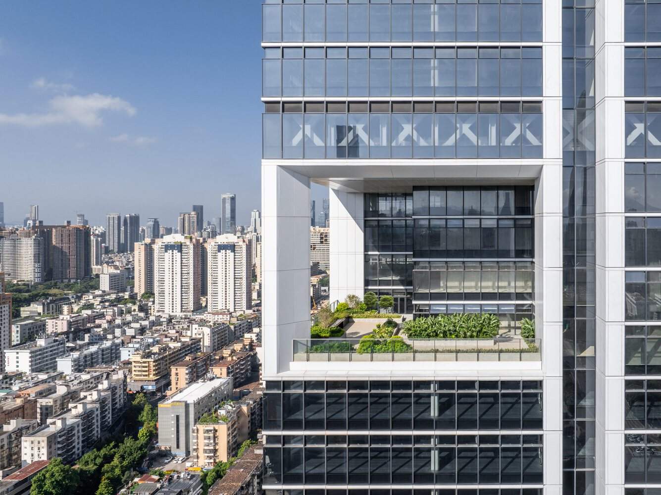 设计亮点:对城市肌理和可持续发展的积极回应:该项目最核心的价值在于其对深圳城市肌理的尊重和对可持续发展理念的积极实践。建筑师没有孤立地设计一座孤立的建筑,而是将其融入城市环境,与周边建筑、景观形成互动。通过对场地特征的解读,建筑师塑造了富有特色的立面,并利用垂直凹槽强化了建筑的竖向肌理。空中花园的设置是该项目可持续设计理念的集中体现,它不仅提升了建筑的舒适度,也减少了能源消耗,降低了对环境的影响。这种设计理念体现了建筑师对城市、对环境、对人的高度责任感,为未来城市建筑提供了有益的借鉴。