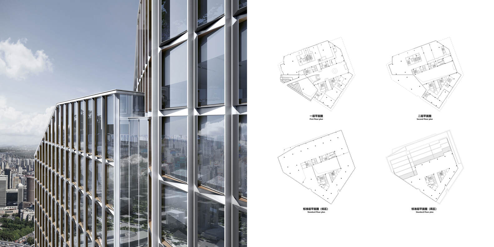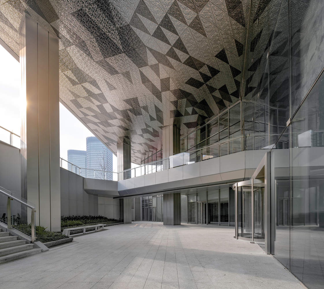 The project consists of a 14 story office and commercial tower and an 8-story residential building. The design team proposed five core design concepts for handling spatial relationships between cities. Create activity spaces with content inside the building, and set up a cross story shared atrium in the office tower, which can carry various activity scenes such as conferences, salons, exhibitions, etc. on a daily basis, forming a vertical vitality generator. As one of the main entities of the project, the office commercial tower achieves spatial integration between private and public properties and composite functions. For cities, projects aim to convey vertical storytelling. Starting from the sunken courtyard on the ground, passing through the office lobby and shared atrium step by step, up to the office space, and finally reaching the multi-level rooftop garden, a continuous spatial experience is constructed that runs through the 60 meter tower. Each level of space forms a gradual narrative from the urban ground to the clouds through changes in light and shadow and visual infiltration. The strict sunlight conditions have given rise to freely flowing roof contours, and the falling green setback makes the roof a "forest space" that can grow. The urban interface along Century Avenue presents a richer urban skyline. A concave sunken square is arranged along the interface of Century Avenue to shape the spatial relationship between the building and the city, and to achieve mutual infiltration between the building and the city through multi-level grey spaces.