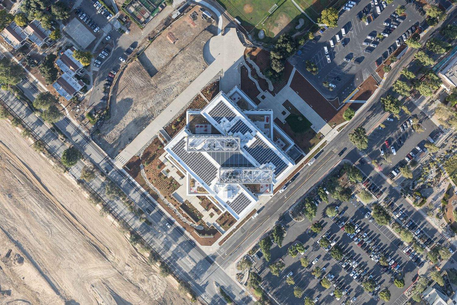The newly built Robert Day Sciences Center at Claremont McKenna College maximizes interdisciplinary integration and interaction: this 135000 square foot building, with each floor facing in different directions, guides people and ideas to flow between laboratories, classrooms, and surrounding campuses. The Robert Day Science Center was put into use in 2020, serving a community of 1400 students. This center is BIG Architects' first completed project in Los Angeles and the first building to be completed in their master plan for the Roberts Campus of Claremont McKenna College (CMC). The overall plan aims to create a more unified campus, consisting of a series of buildings that will extend the existing central square and adjacent sports venue areas currently under construction. The collaborative team of the Science Center includes structural engineer Saiful Bouquet, general contractor KPRS Construction, and construction management company IDS Real Estate Group.