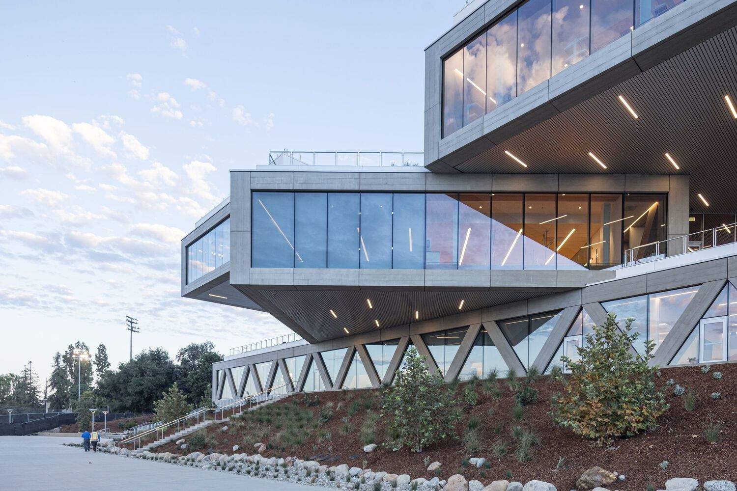 随着白昼渐入黑夜,罗伯特·戴伊科学中心依旧如灯塔般闪耀,汇聚着科学思想、研究与创新的洪流。在圣盖博山脉的映衬下,这座灯火通明的建筑不仅稳稳矗立于克莱蒙特·麦肯纳学院(CMC)的东部门户,更将周边校园转变为一个充满活力、启迪灵感的探索之地。