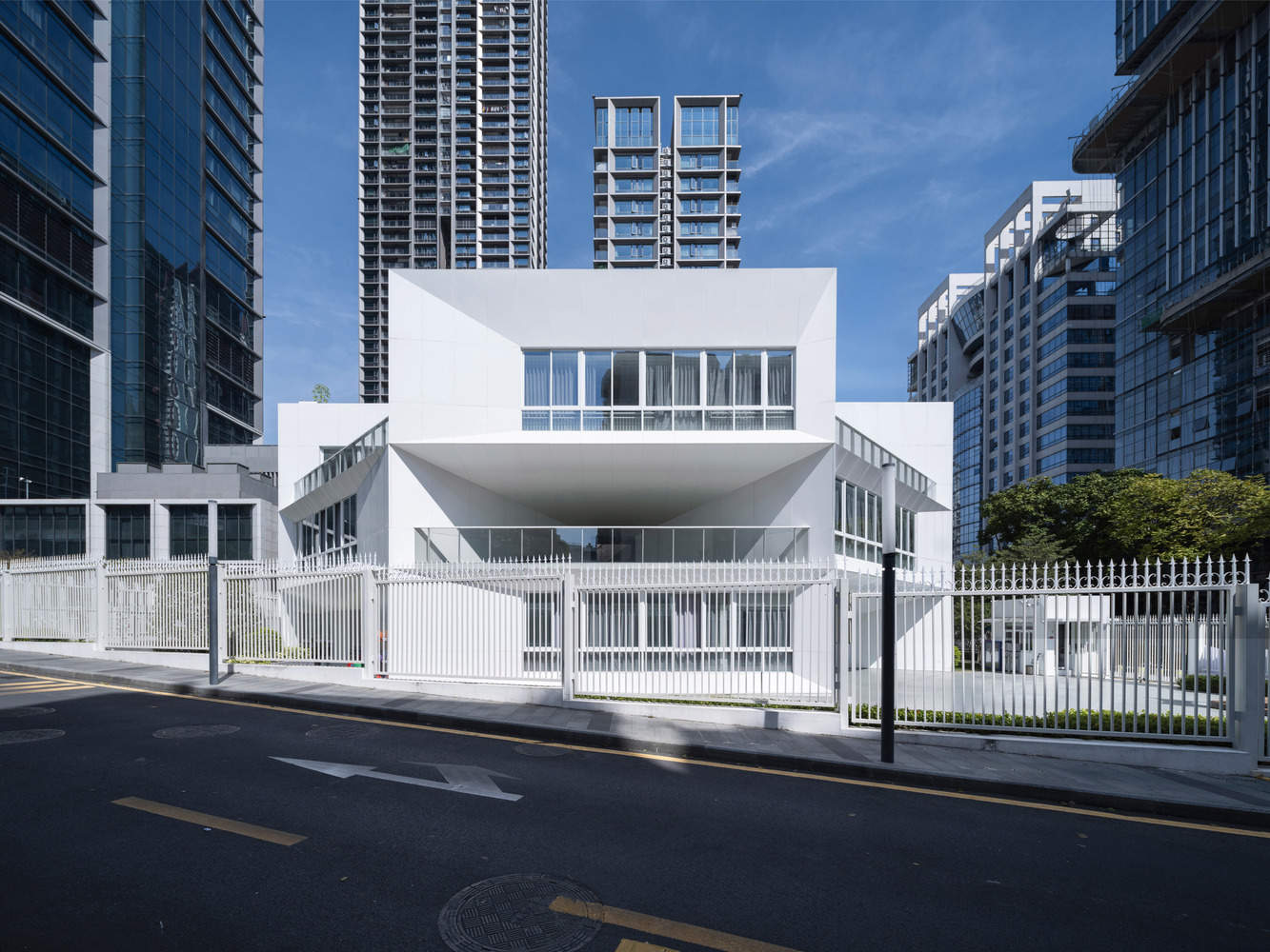 The project is located at the corner of a super high-rise project site on the south side of a golf course in Futian District, Shenzhen. The construction land is very tight, so there is not much extra space left if basic functions are included. Although the space in this kindergarten is small, we still hope to create a simple and interesting space for the children.