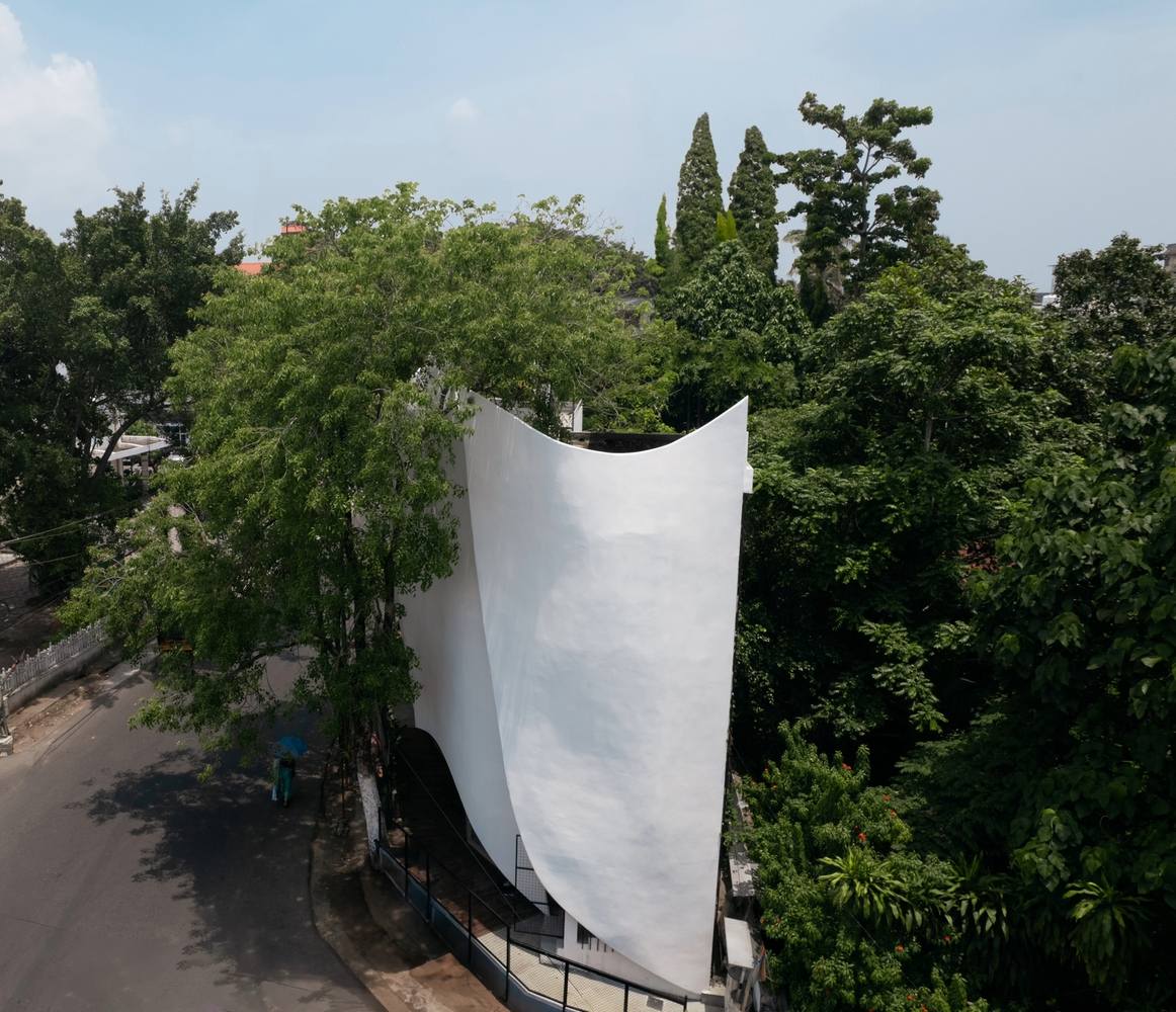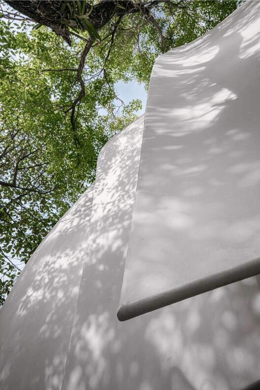 The project is built on an irregular piece of land of only 76.4 square meters - a usually overlooked urban abandoned land, but the project did not compromise on it and responded with creativity. Design is not about imposing rigid geometric shapes, but about flow: a curved, cast-in-place concrete shell that embraces constraints and transforms them into sculptural possibilities.