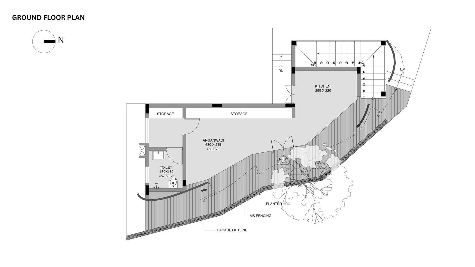 This Anganwadi is not only responsive in form, but also responsible in function. The passive design strategy reduces reliance on artificial lighting. Solar panels support energy demand. Locally sourced materials can help reduce carbon footprint. The small footprint and careful layout of the structure protect existing trees while allowing ventilation and natural light to enter. In addition to serving as an early childhood care center, this building also represents a prototype of a new type of civic architecture - a building that respects the background, serves the community, and brings dignity to public infrastructure.
