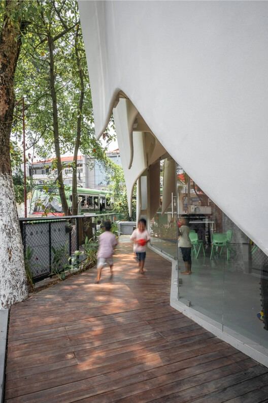 This preschool center not only responds quickly in form, but also fulfills its responsibilities and is reliable in function. The passive design strategy reduces reliance on artificial lighting. Solar panels meet the energy demand. Locally sourced materials can help reduce carbon footprint. The building has a small footprint and a reasonable layout, ensuring ventilation and lighting while protecting existing trees. In addition to serving as a childcare center, the building also represents a prototype of a new type of urban architecture - respecting the environment, serving the community, and endowing public infrastructure with dignity.