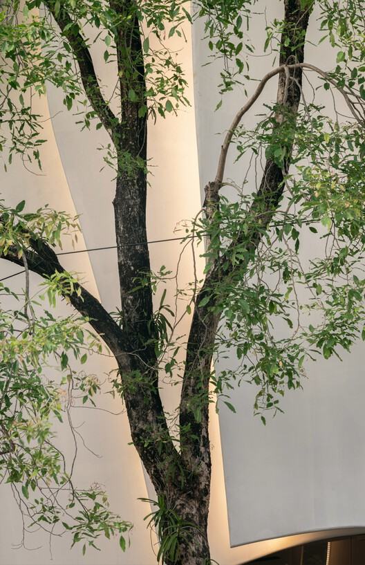 The white petal shaped concrete leaves on the exterior facade are both a fence and an expression. These leaves not only have a sculptural feel, but also attract light, soften the interface between buildings and streets, and surround the existing trees on the site. The use of curves not only coordinates scattered plots, but also adds warmth, rhythm, and personality to this originally inconspicuous corner of the city. At night, the folds glow softly under the embedded lighting, making the building a symbolic lighthouse of community care.