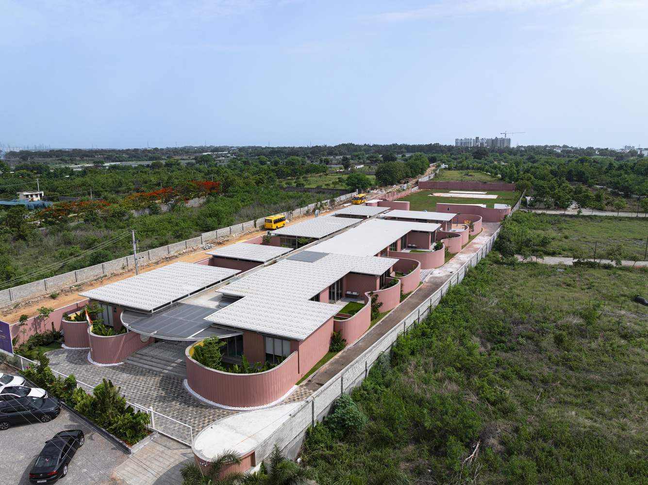 Driven by large-scale office and residential projects, Hyderabad is rapidly expanding westward, and the city center is also rapidly changing. However, this rapid development speed exceeds the construction speed of supporting infrastructure, leading to a surge in demand for new facilities, especially in schools. Our client is an experienced builder who plans to build a large permanent school to meet this demand. Before the permanent campus is built, they need a transitional campus to enroll the first batch of students. These first batch of students will move in after the permanent new campus is built. After the transition is completed, this campus will be transformed into a flagship office building, showcasing the construction company's various projects in the local area.