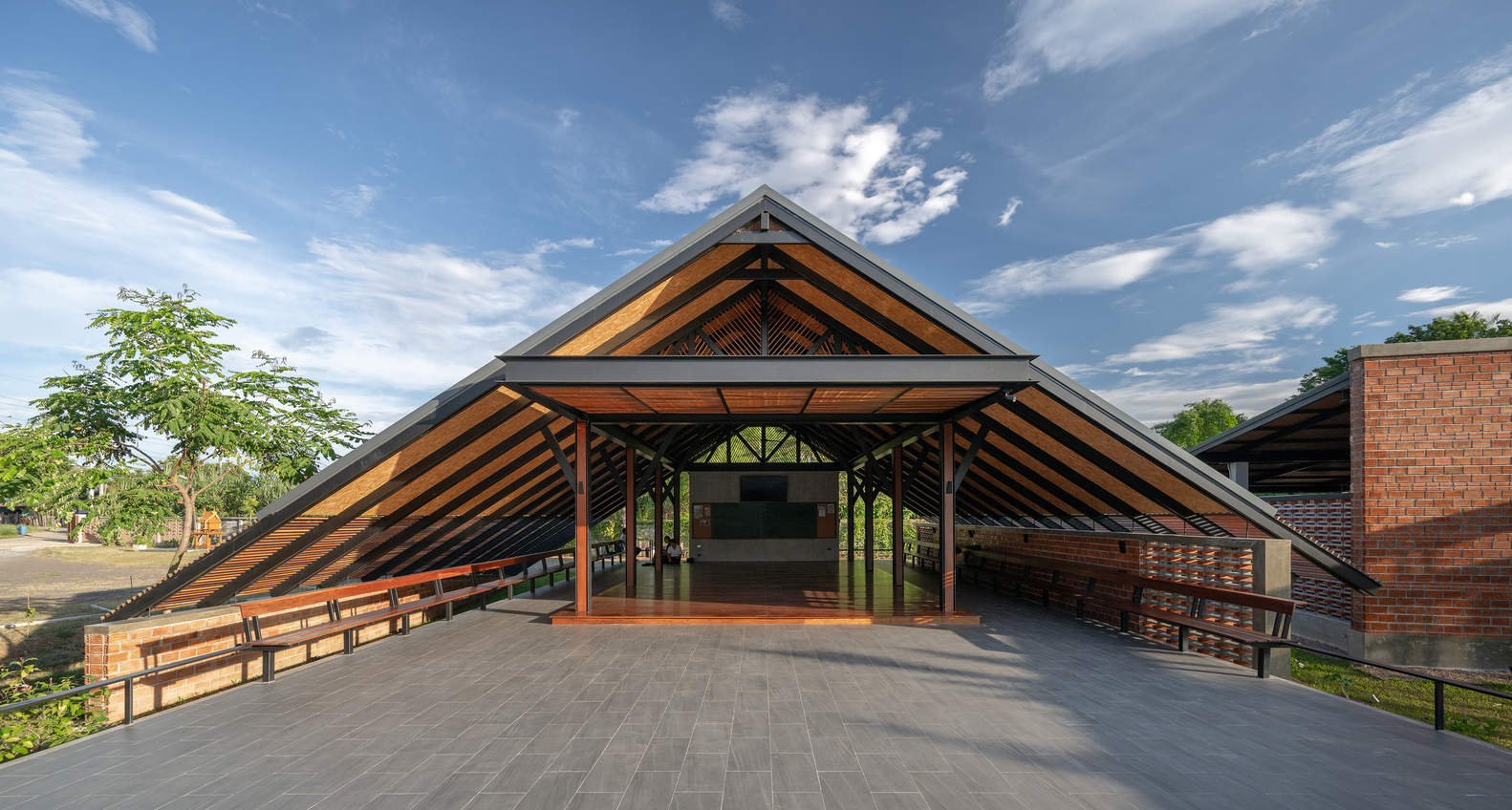 该项目选址于曾经的稻田之上,毗邻南塔空运河(Lam Takhong Canal)上游 —— 这条运河是滋养呵叻府(Nakhon Ratchasima,又译那空叻差是玛府)市的重要命脉。场地内还保留着一座传统的拉哈德·维德·纳姆(rahad vid nam,即水车),这是一种利用自然能源驱动的本地灌溉装置,至今仍能运转,见证着当地人民的自给自足传统。这片几乎全年都生机盎然、肥沃富饶的土地,激发了人们创建一座大型露天学习中心的灵感,在这里,自然成为体验的核心,而建筑则成为教育的助力。