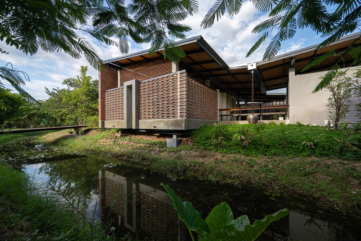 The project is located on a former rice field, adjacent to the upper reaches of the Lam Takhong Canal - an important lifeline that nourishes Nakhon Ratchasima city. There is still a traditional rahad vid nam (water wheel) preserved on the site, which is a local irrigation device driven by natural energy and still operates today, witnessing the self-sufficiency tradition of the local people. This land, which is almost full of vitality and fertile all year round, has inspired people to create a large open-air learning center. Here, nature becomes the core of the experience, and architecture becomes the driving force for education.