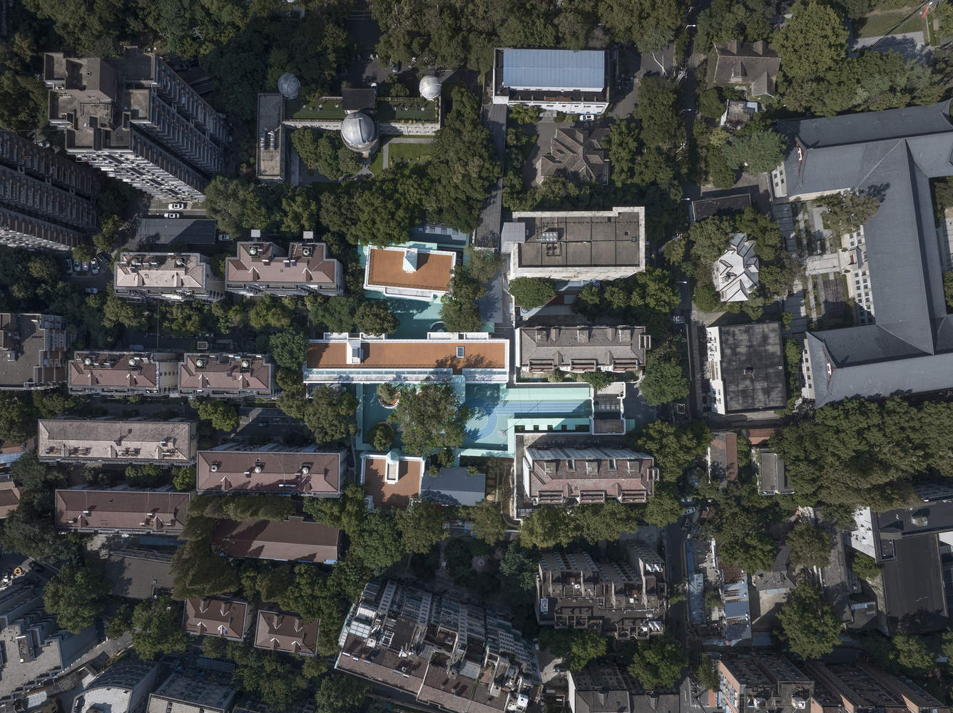 南京大学幼儿园是一所面向社会招生的公立幼儿园。它位于南大鼓楼校区西侧,与校区“北园”隔平仓巷而邻。幼儿园北侧为南大工程管理学院(包括原天文楼),东侧为留学生公寓,西、南侧为社会性居住小区。园区主体处于街廓腹地,仅通过东侧学生公寓间的狭长用地与平仓巷入口连通。自 1953 年建园以来,园区经过多次拓展、扩建而成。在此过程中,由于缺乏整体的规划,而存在空间、使用上的诸多问题。并且,部分园舍建筑经结构检测已无法达到安全标准。因此,本次改造更新既需要重新梳理、整合园区空间结构,又需要对园舍建筑进行加固、改造。