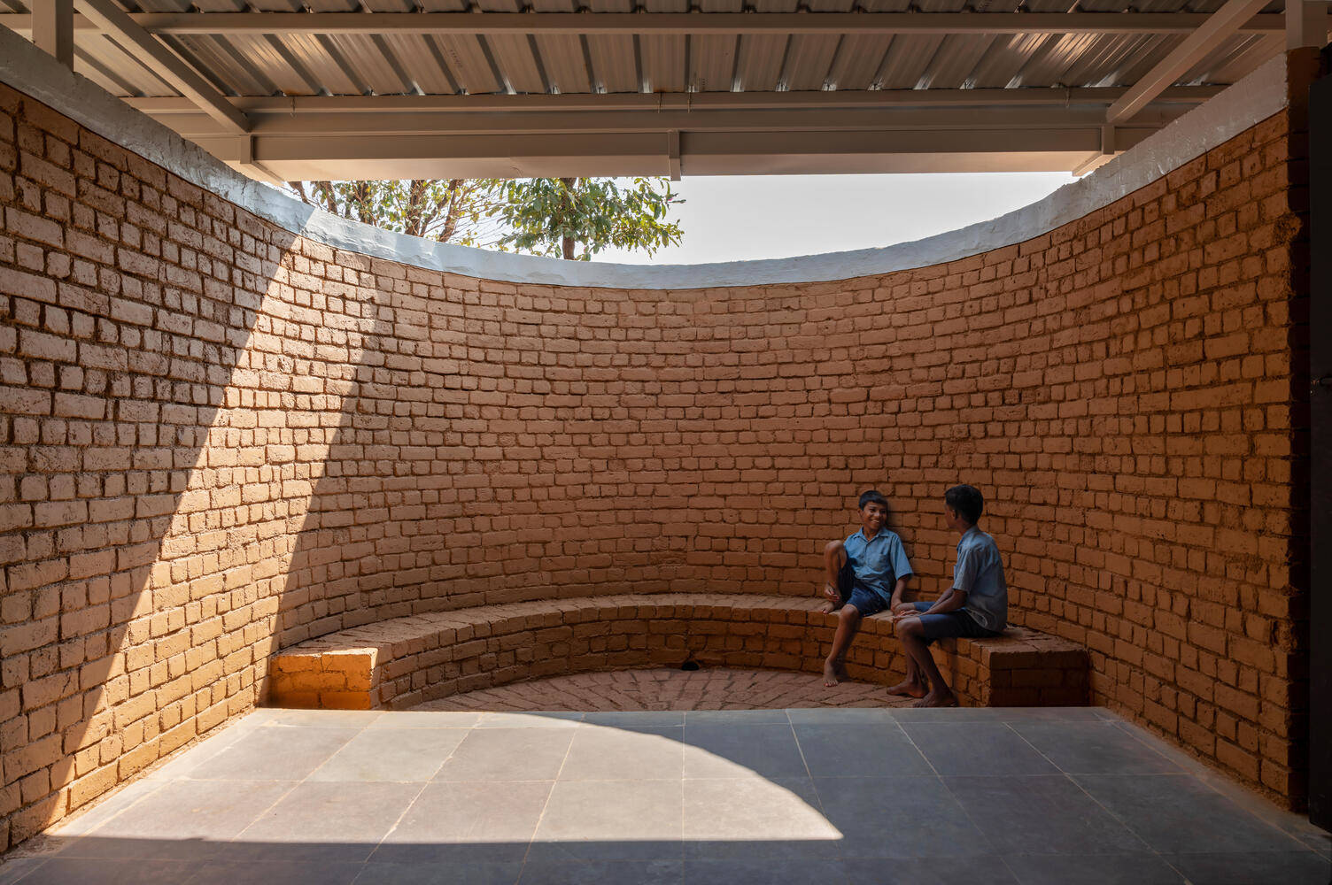 可持续性和实用性:项目在材料选择和建造方式上体现了对可持续性和实用性的高度关注。承重砖墙体系的使用,既方便了施工,又降低了成本。轻薄的平屋顶设计,不仅改善了通风条件,还提供了绘画的载体,增加了建筑的趣味性。高起台基表面涂覆牛粪,体现了对当地材料的利用和对传统工艺的尊重,同时也为孩子们提供了舒适的坐卧体验。整体而言,该项目在设计中融入了环境友好理念,并充分考虑了当地的实际情况和资源限制,展现了卓越的设计智慧和对社区负责的态度。这种设计也体现了对当地社区的尊重和对教育事业的支持。