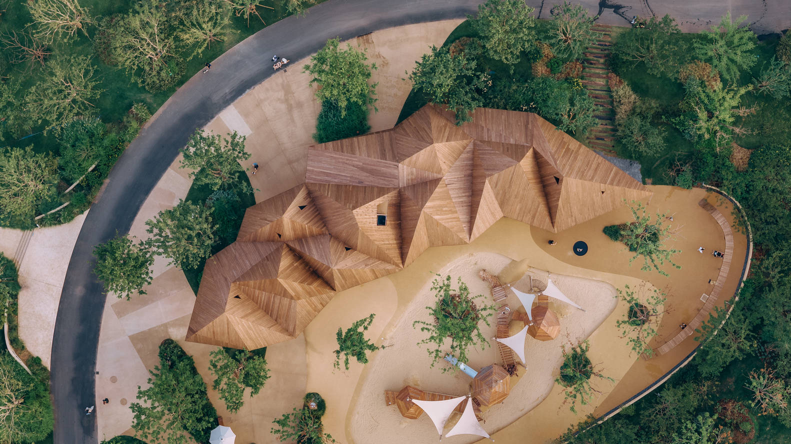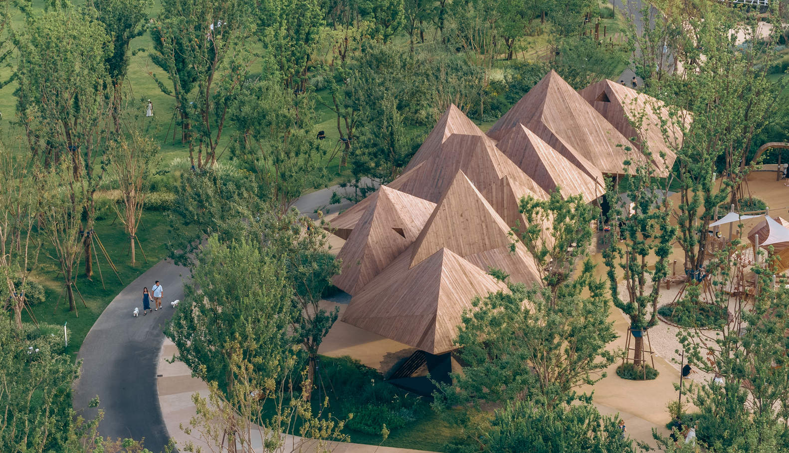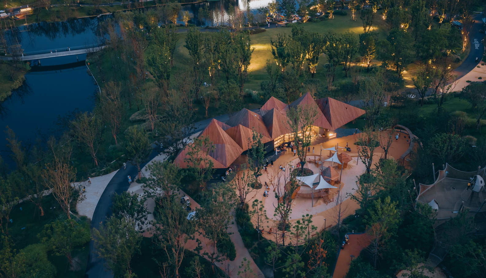 In the design phase, it was envisioned that people could also enter the roof to increase dining space and diverse experiences. However, it was later cancelled from an operational perspective, but the design was still retained. After all, it is not only the space where people enter that has functionality, but also the consideration of people's visual experience and the overall spatial hierarchy of the park. We humans are not sound and need the help of external devices, such as shoes to help us run, chopsticks to help us eat, cars to make us move faster, and computers to make us smarter. These seemingly functional external devices help us become "human". Similarly, our minds are also not sound. We need nobility, humility, dignity, courage, and external assistance, such as music and art. Similarly, architecture also plays a role in helping us become more complete individuals.