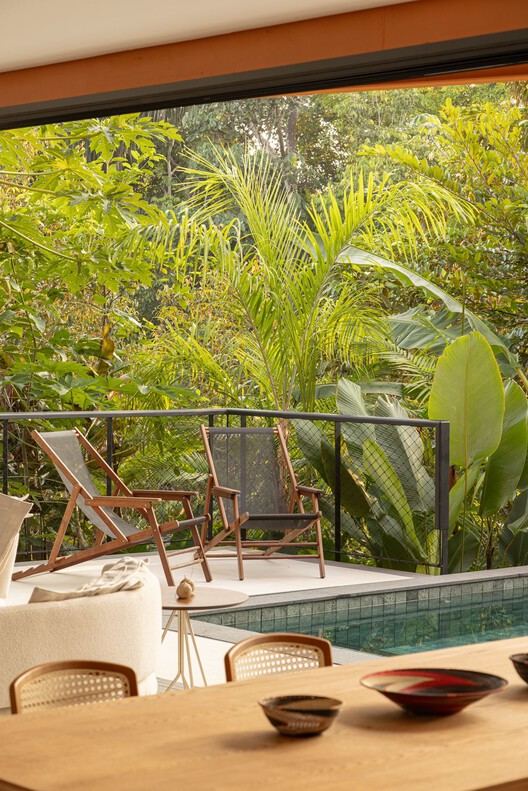 通过自动化灌溉系统与尊重地形生态的实施方式,卡萨·普普尼亚强化了“悬浮于绿植之上”的住宅理念。植物选择优先采用适应亚马逊气候的本土物种,如竹芋、海芋、鹤望兰、香蕉树及棕榈科植物。