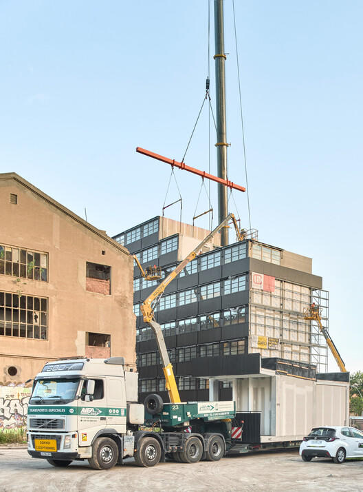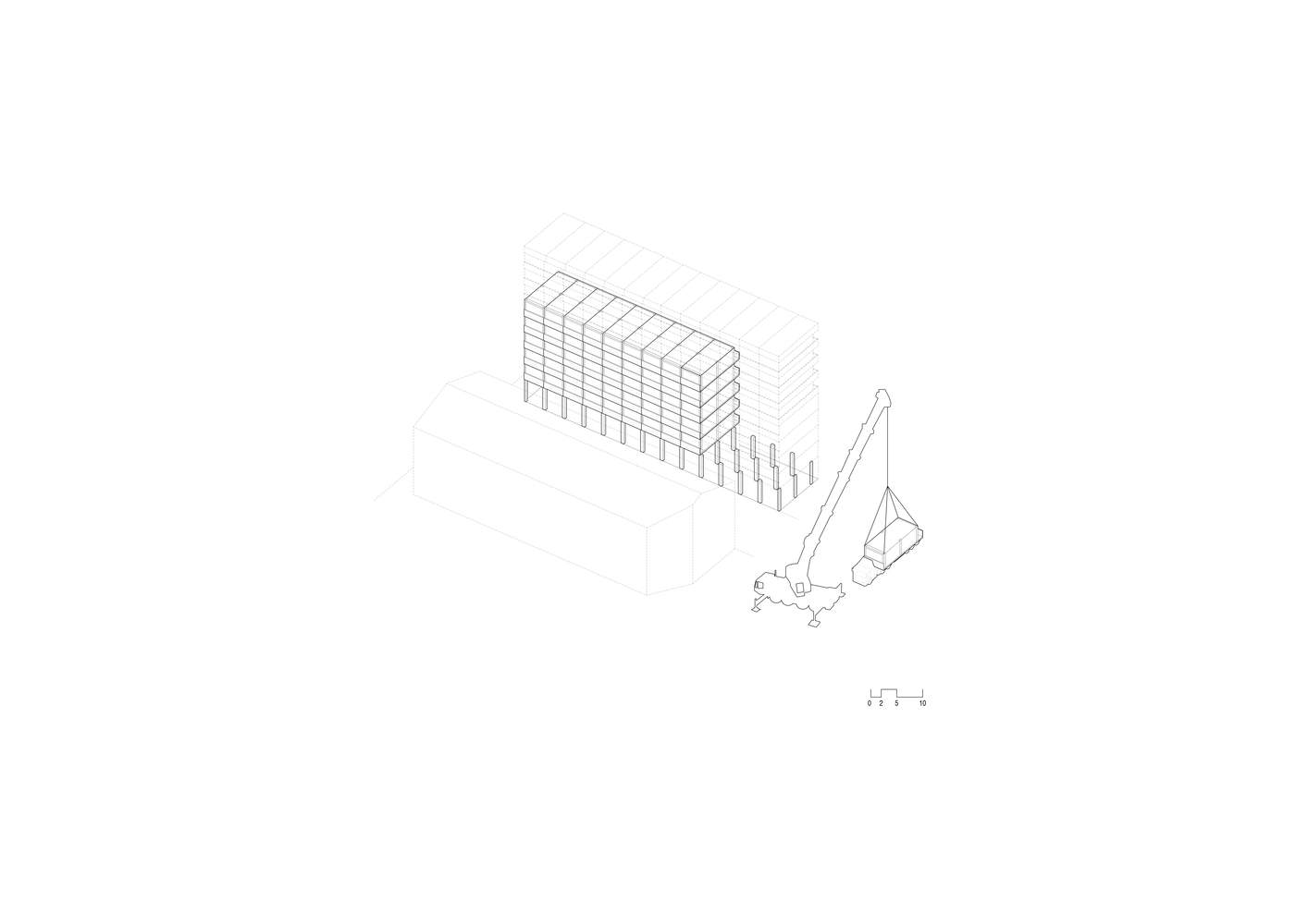 The scheme adopts the modular residential building concept, achieves flexible use needs for current and future needs through a clear structural system (prefabricated 3D modular construction), and supports functional conversion.. The architectural language continues the industrial characteristics of the original textile factory on the site and forms a dialogue with the surrounding environment.