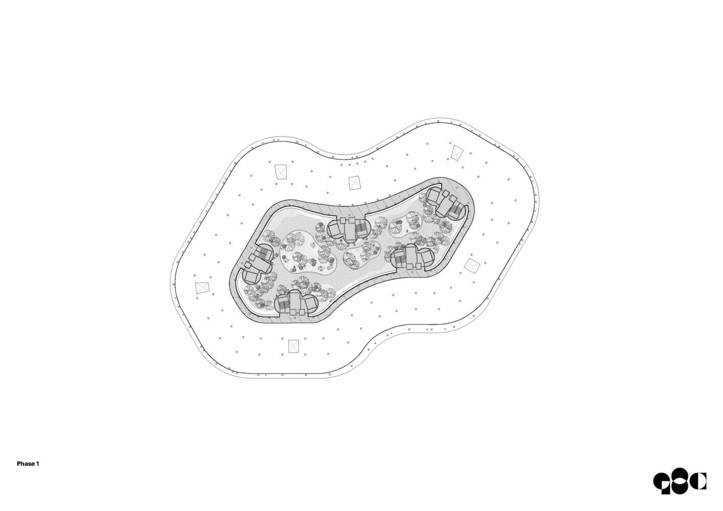 该方案主张采用水平方向上的密集化布局,而非预期中一旦建成便受限的垂直解决方案。通过将楼层保持在较低高度并采用曲线轮廓设计,实现了可持续增长。正如细胞不断分裂与再细分,数量持续增加一样,无限村也将以一种与景观诗意交融的连续有机形态不断拓展。