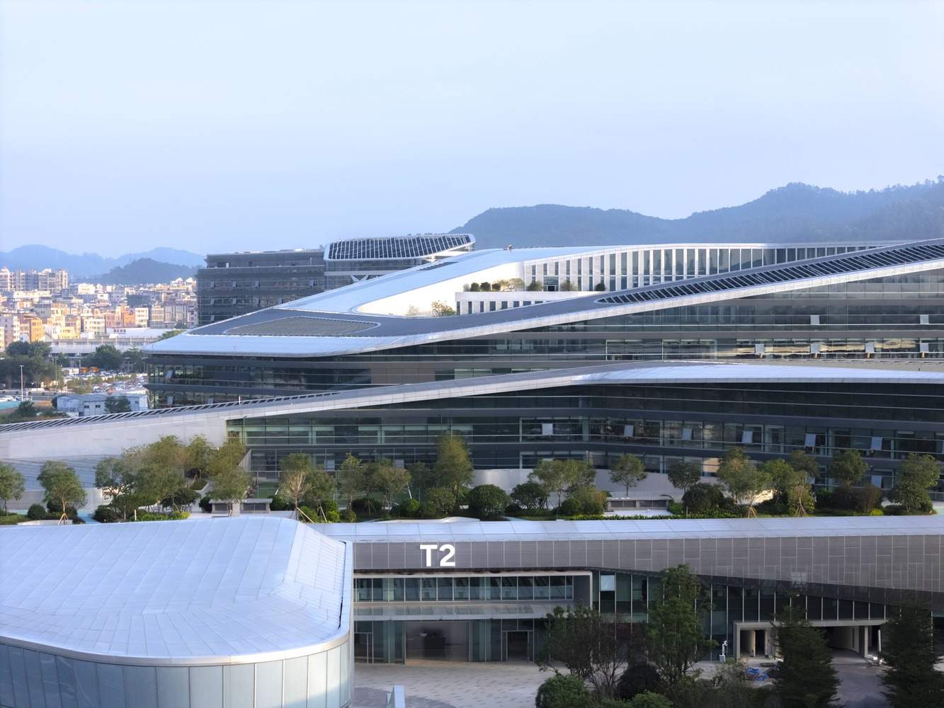 小鹏汽车新总部园区建筑体量庞大、周边环境限制严格、功能复杂、技术难度高。建筑中既有常见的总部大楼功能,还有高保密的产业核心功能,同时集成了近两万平米的地下餐厅、和机场相似的综合交通系统、同时面对不同受众的展示销售和发布功能,由内到外都是一个全新类型的超级综合体建筑群。
