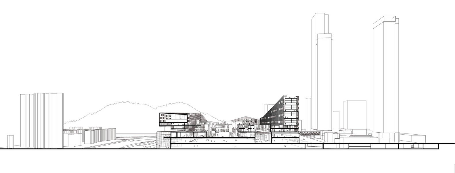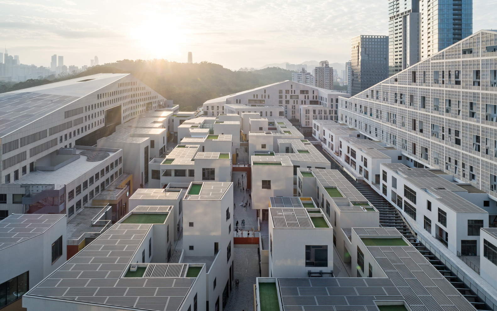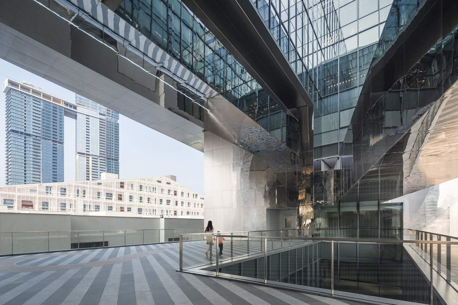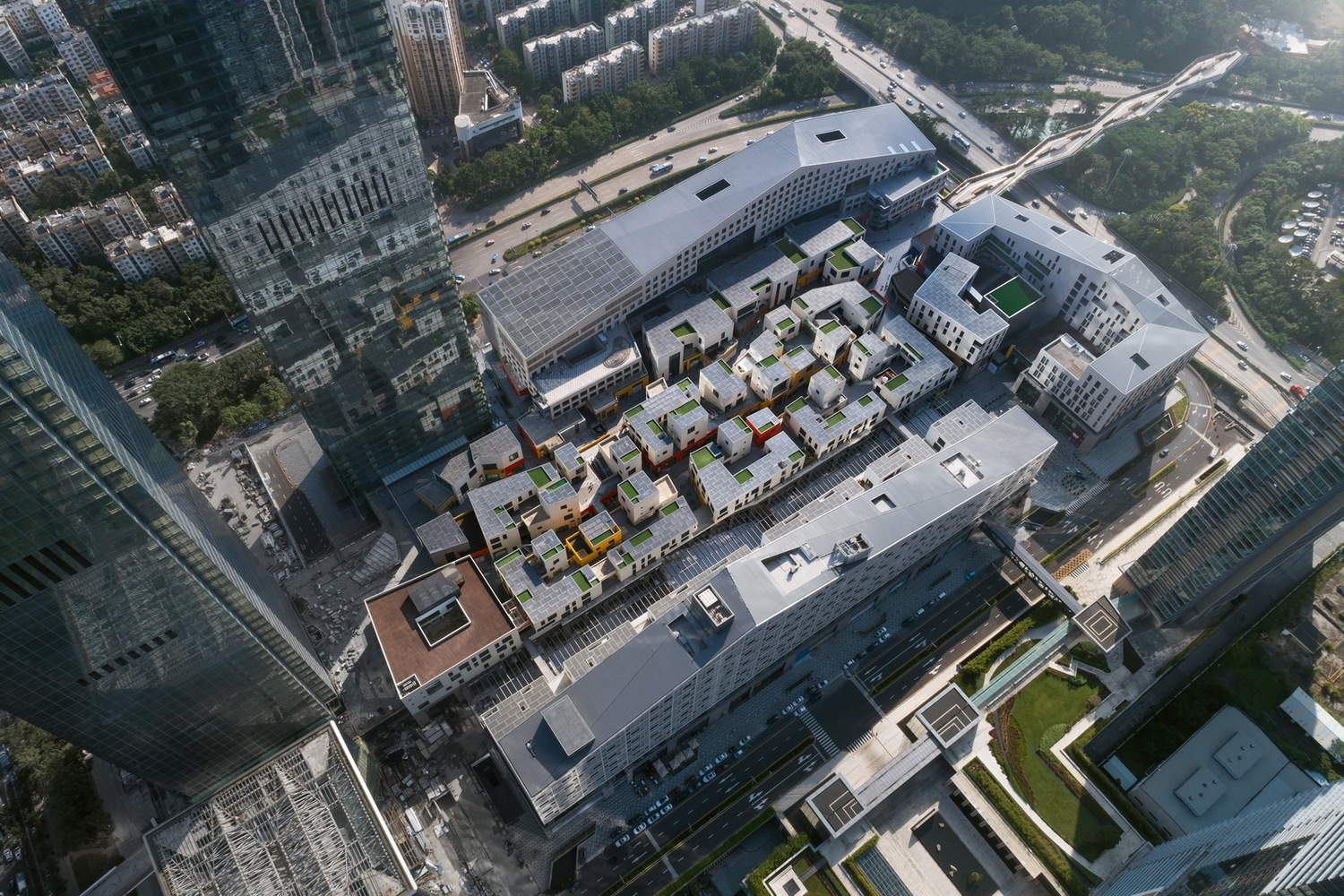 基地为包含6栋超高层办公、酒店及商务公寓的高端综合体,毗邻深圳CBD核心圈,位于两大城市中心公园之间。都市实践的设计任务是在其占地逾6万平方米的大型购物中心顶部,建造10万平方米的居住及办公 LOFT。