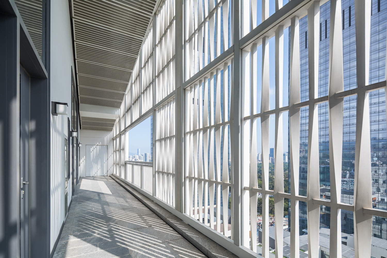 办公与商业平台之间以竖向交通连接,办公人群下楼即可漫步商业街,上楼又可继续工作,往北A区可居住,往南去往D区可看展览,深业上城 LOFT以新的建筑空间模式创造了多维度的生活方式。