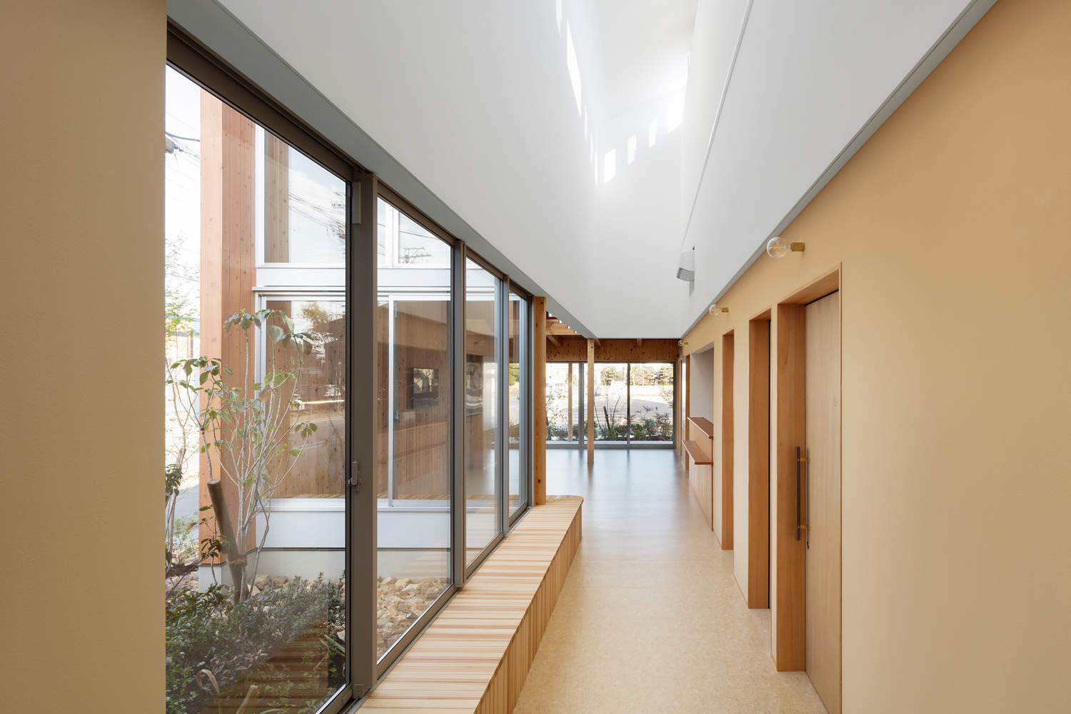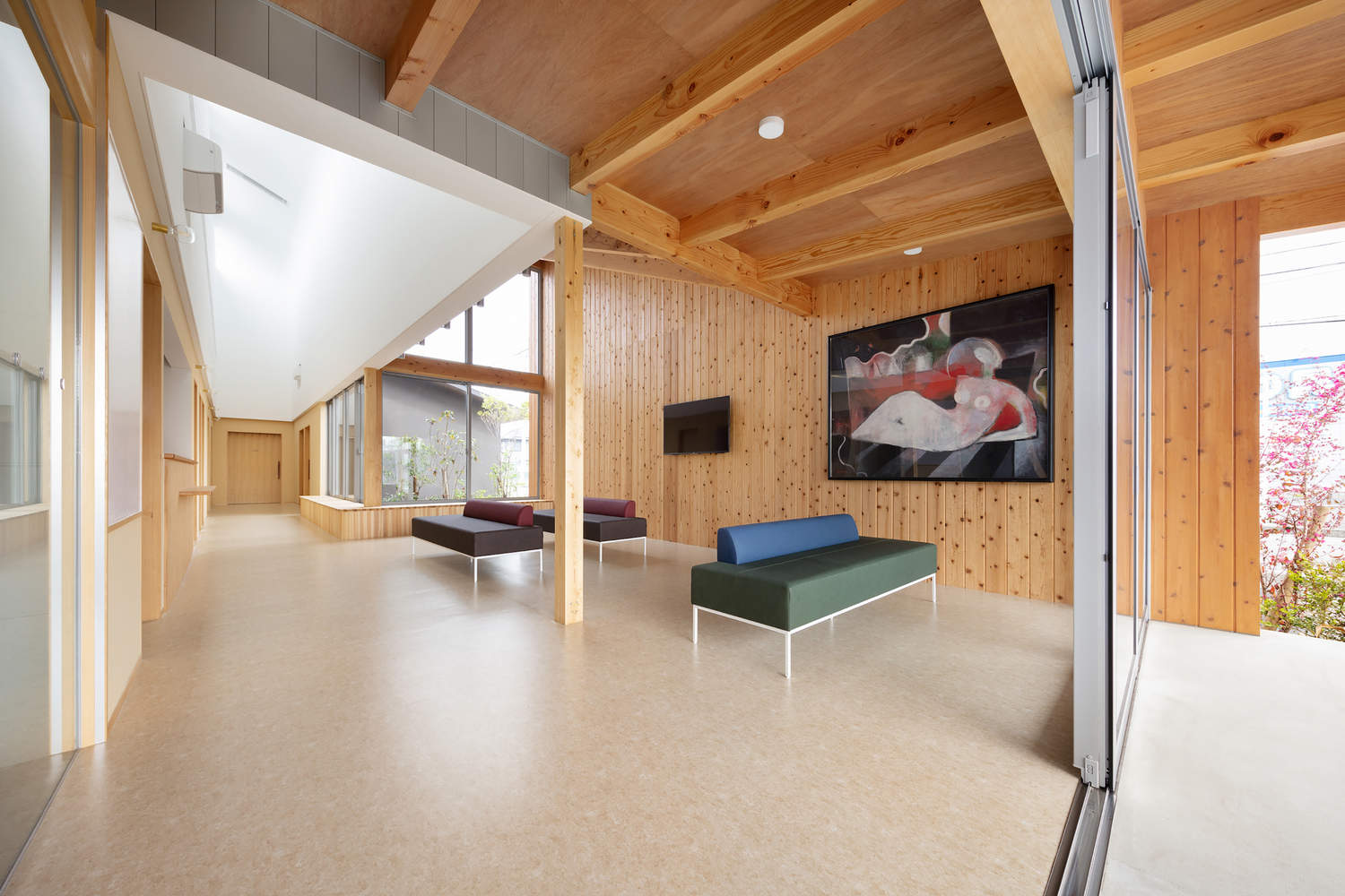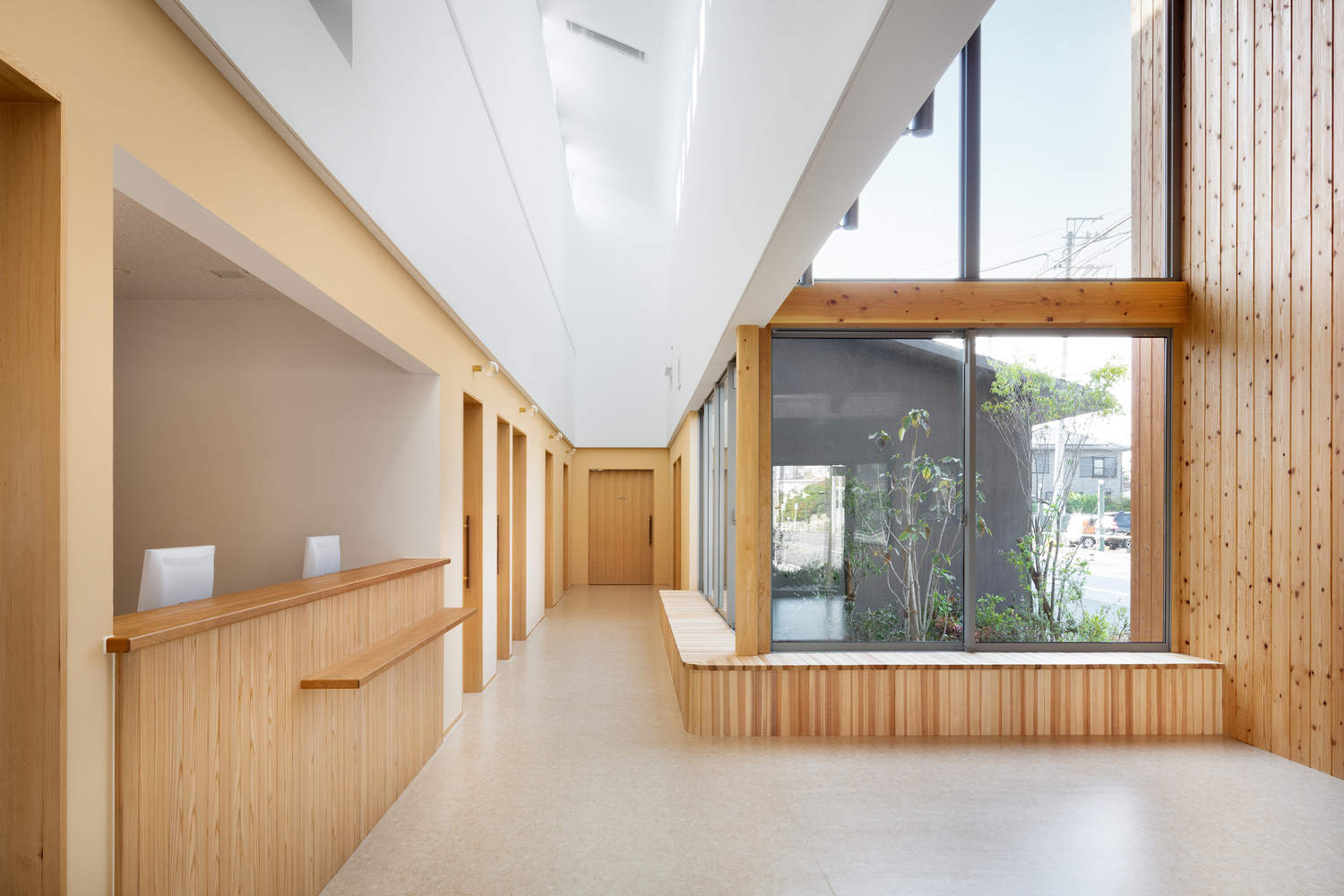 The waiting room is a wooden structure with two sides facing the garden, creating a comfortable space with a natural feel. In the examination room, treatment room, and operating room, we attempted to create a space based on local characteristics by using colors.