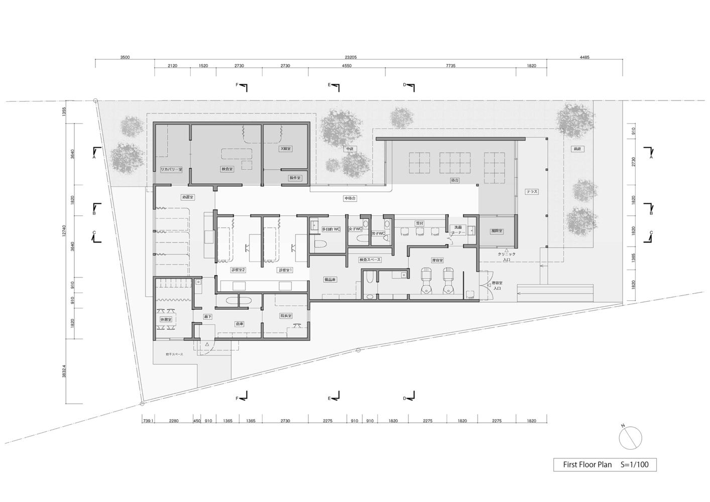 体量与空间的融合:樱井诊所的设计将建筑体量与开放空间巧妙结合,形成了独特的建筑语言。六个不同功能的房间与三个开放的花园相互穿插,打破了传统诊所的封闭布局,创造出一种“跳脱和杂乱”的视觉效果。这种设计理念并非简单地追求形式上的创新,而是旨在使建筑更好地融入当地环境,如同城市景观随着时间推移而自然生长。这种设计手法赋予了建筑更强的生命力,使其不仅仅是一个医疗场所,更是一个融入社区、服务社区的场所,体现了建筑师对城市肌理和社区关系的深入思考。
