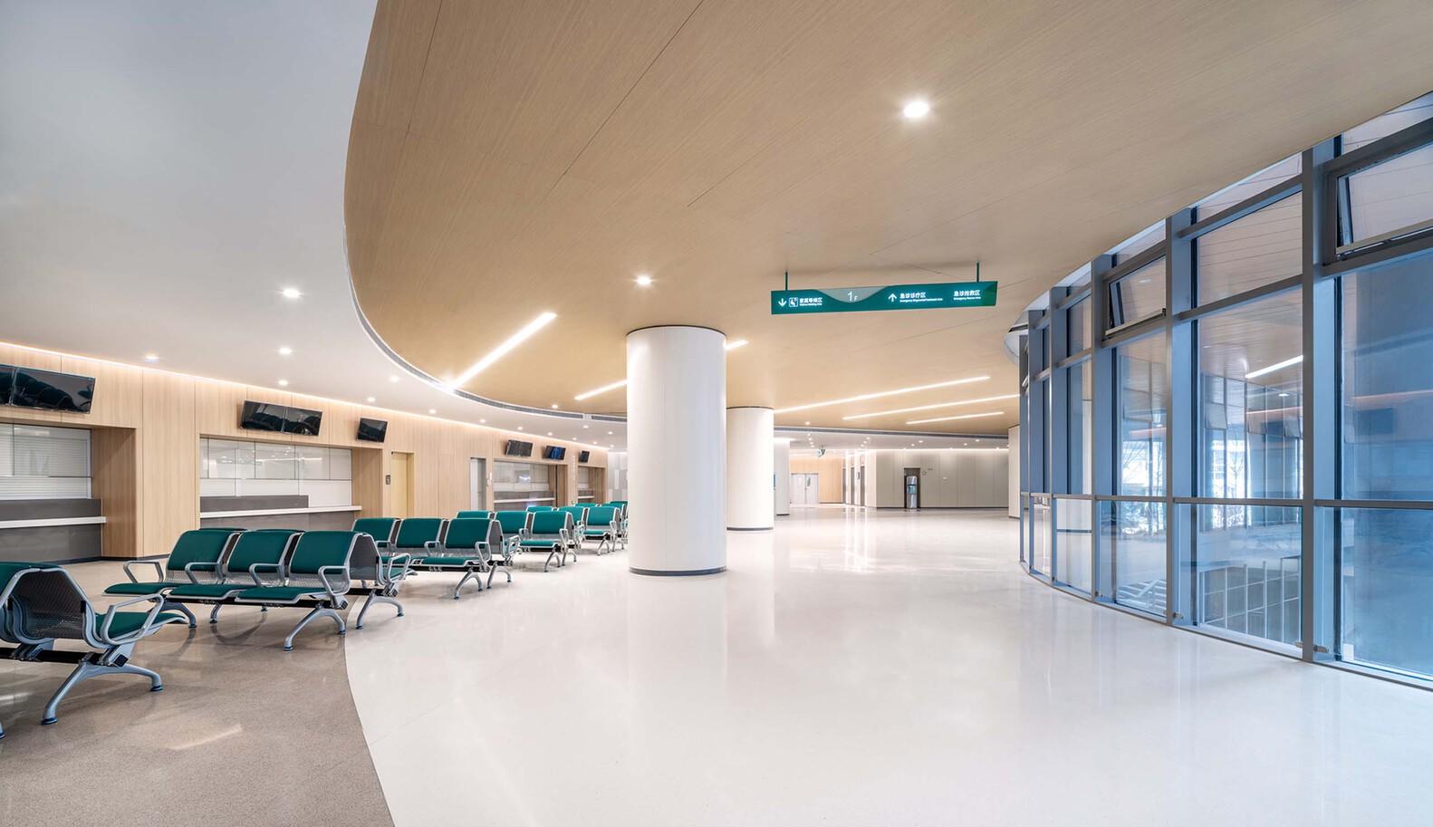 The Emergency Comprehensive Building is a regional emergency center that integrates pre hospital first aid, in-hospital rescue, emergency surgery, and intensive care units.. The emergency and first aid building is adjacent to Wenhua West Road, making it convenient for ambulances to directly reach through the emergency entrance. The roof is equipped with a helicopter landing pad, vertically connecting the emergency center, rescue room, surgical center, ICU and other departments to ensure the integration of land and air rescue, thus building a fast, efficient and fully covered emergency and critical care medical treatment system. Unlike the traditional concept of "shared interventional diagnosis and treatment center", the design of the interventional center creates an intensive central island control room, with digital subtraction angiography (DSA) operating rooms on both sides, ensuring that medical staff can see all surgical procedures in the catheterization room from the central control room. Medical staff can discuss and support each other here to ensure patient safety. This design saves labor and time costs, truly achieving sharing, intensification, and efficiency. The inpatient department is located at the upper part of the medical technology podium, with a direct medical ladder that connects the nursing unit with the medical technology and emergency departments. The inpatient department can efficiently reach medical technology areas such as the imaging center and surgical area, with shorter distances, higher efficiency, and stronger overall functionality between related functions. The establishment of dual nursing units allows wards to be relatively independent and share human and equipment resources, meeting the requirements of setting wards according to disease types. Centralized arrangement of medical elevators can improve space utilization.